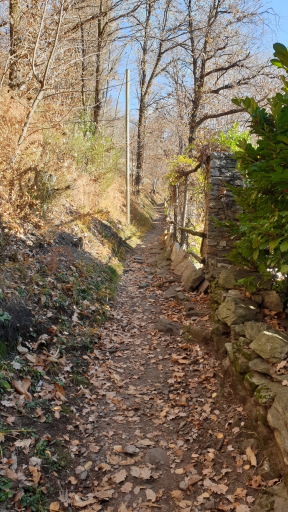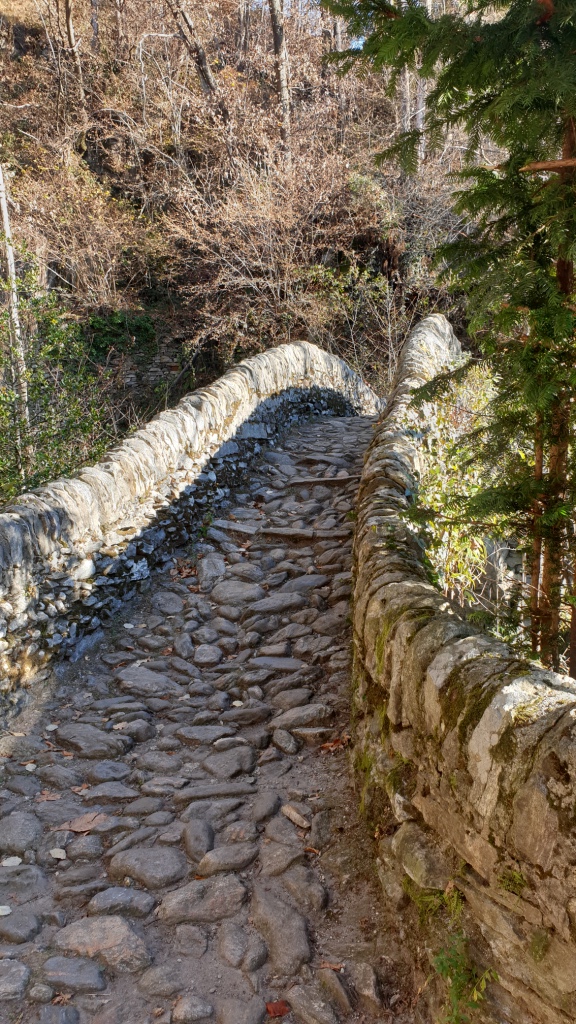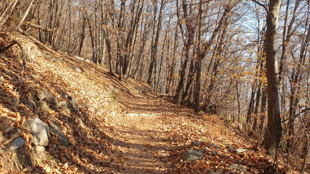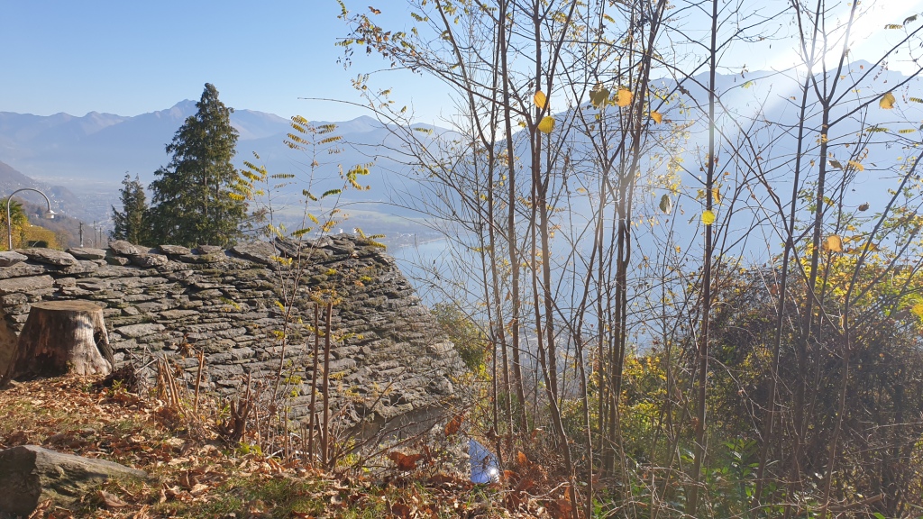 Der Weg läuft angenehm am Hang entlang bis zur Weggabelung des Wanderwegs Nr. 74, welchen wir nun folgten bis Orselina. Am Anfang überquert man eine alte, sogenannte Römerbrücke aus Stein. Ein Stückchen weiter kommt man an der Capella Rotta vorbei. Weiter geht es schön gemütlich oberhalb Brione durch Wald und über Bäche mit zwischendurch atemberaubenden Ausblicken auf den Lago Maggiore. Bei Orselina kommt der Wanderweg nah an der Via all’Eco vorbei. Wir sind dann nach Orselina hinein und haben von dort den Bus wieder nach Locarno genommen, da im November die Funiculare hinunter nach Locarno in Revision war. Man könnte auch weiterwandern bis Monti della Trinità.