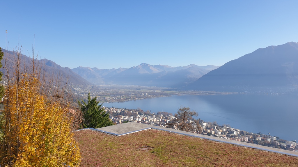 Im November 2020 sind wir mit dem Bus von Locarno nach Contra Paese gefahren. Unser Ziel war die Wanderung auf der Collina Alta zurück nach Locarno zu machen. Von Contra aus ging es erst ein wenig der Strasse entlang zu einer kleinen Schlucht, dann durch den Wald nach oben bis zur Strasse ins Val Resa. Dieser folgten wir ein paar Kurven mit herrlicher Aussicht. Die Sonne schien an diesem Tag und es zeigte sich ziemlich gute Fernsicht.