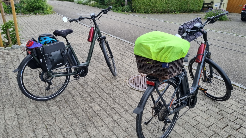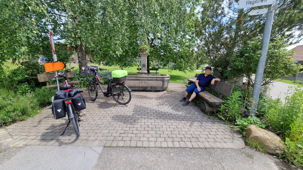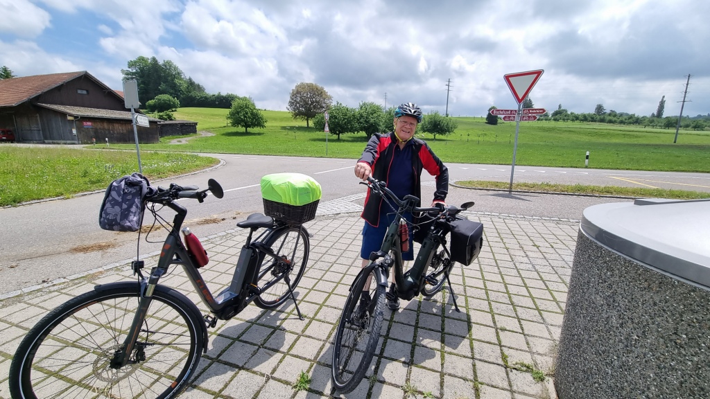 Wir starten kurz nach Mittag von zu Hause aus unsere erste Etappe, die uns über Bischofszell, Hagenwil, Romanshorn nach Uttwil bringen soll. Das Wetter ist noch etwas unsicher, die Tage davor hat es ständig geregnet und auch am Abreisetag ziehen dunkle Wolken umher. Wir hoffen, dass wir trocken in Uttwil ankommen. Der Anfang ist easy, es geht meistens abwärts, ein paar Steigungen gibt es trotzdem, sodass wir froh um unseren Elektroantrieb sind.