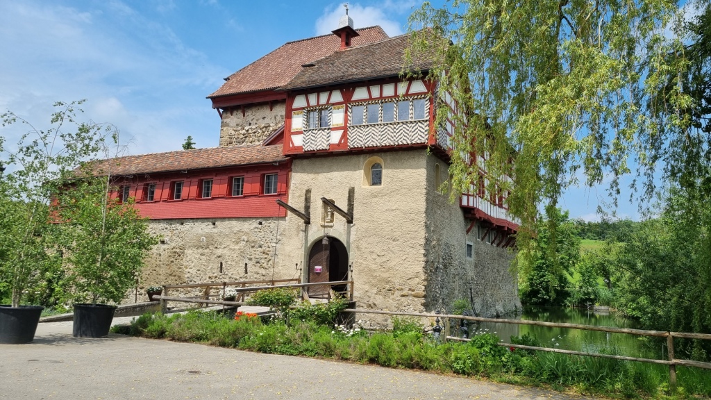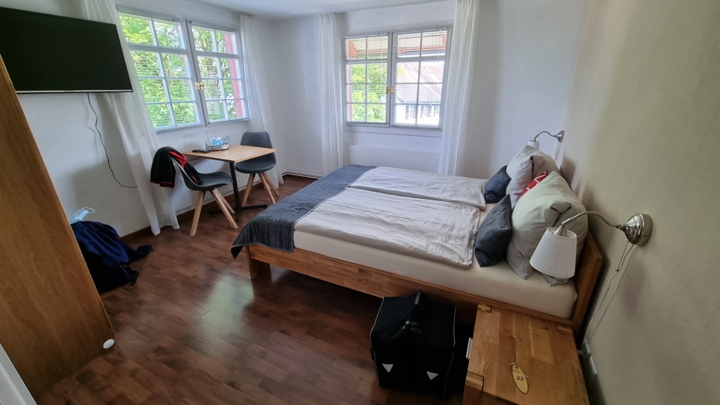 Frisch gestärkt geht es jetzt auf dem Bodenseeradweg weiter bis nach Uttwil. Die ersten 35 km haben wir locker geschafft und auch das Wetter war auf unserer Seite. Hier haben wir eine Übernachtung gebucht im Hotel Frohsinn. Wir werden nett empfangen, es wir uns alles gezeigt, die Fahrräder können wir in einem abschliessbaren Abstellraum einstellen. Die Zimmer sind modern und schön renoviert, auch das Bad gefällt. Einzig die Hauptstrasse ist sehr laut, nur bei geschlossenem Fenster geht es einigermassen. Das geschichtsträchtige Riegelgebäude ist jedoch sehr schön und auch der Garten ist gemütlich.
