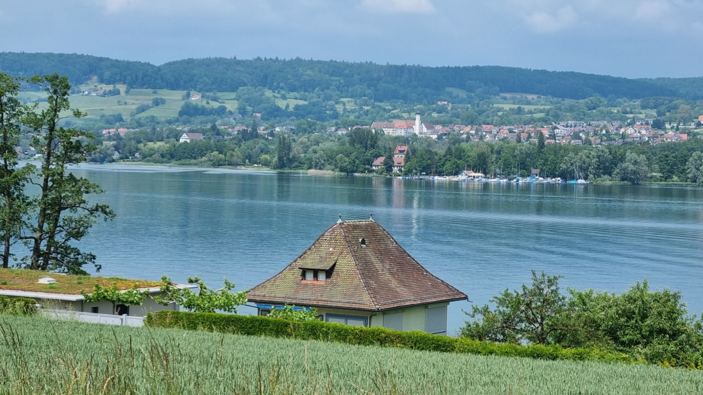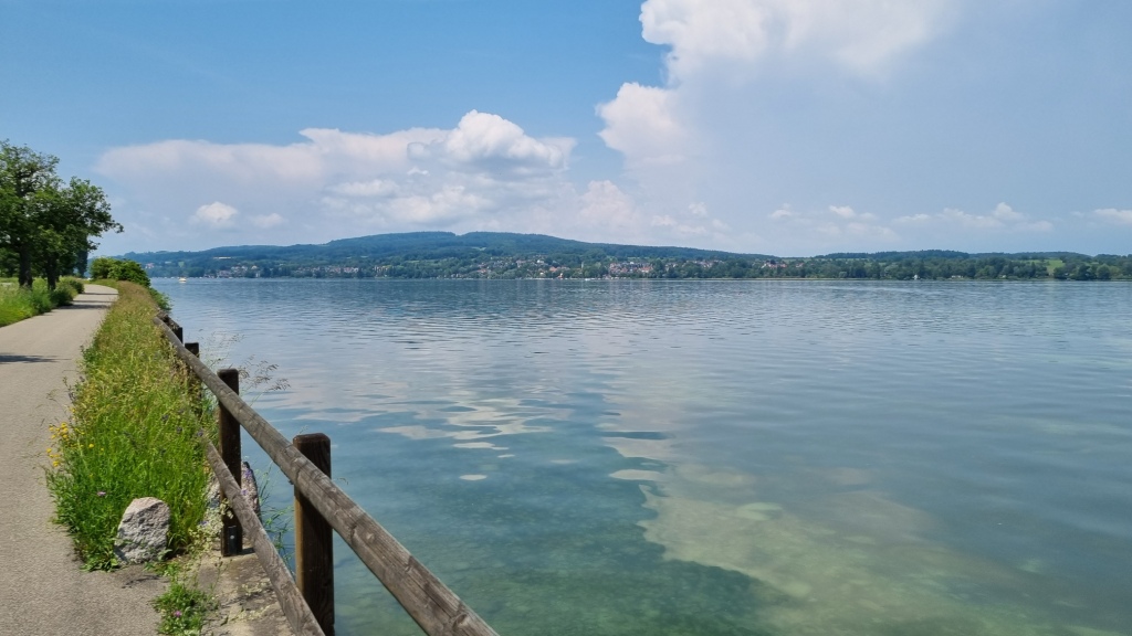 In Ermatingen machen wir einen Halt und geniessen auf dem neu angelegten Schiffssteg eine Mittagspause. Der Bodenseeradweg ist überall gut ausgeschildert, wir sind sehr gut durch Kreuzlingen gekommen, es geht meist auf separatem Fahrweg dem Bahngleis entlang. Die Ortschaften am See sind sehr schön anzusehen und laden jeweils zu einer kurzen Pause ein.