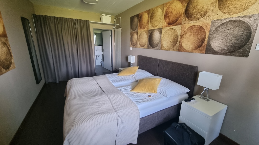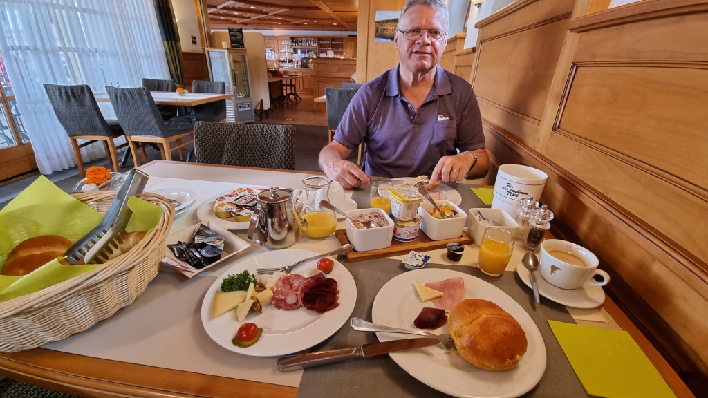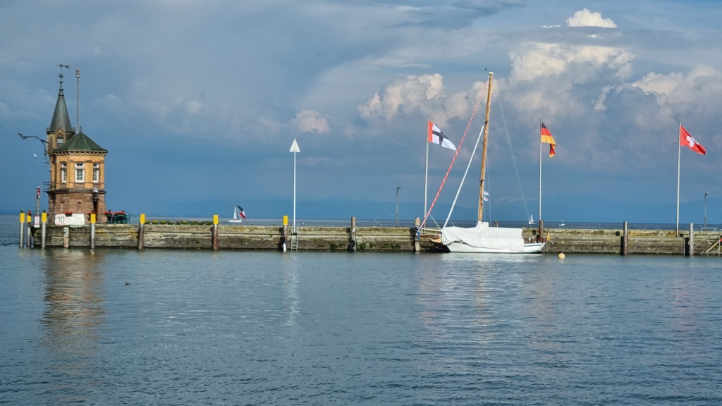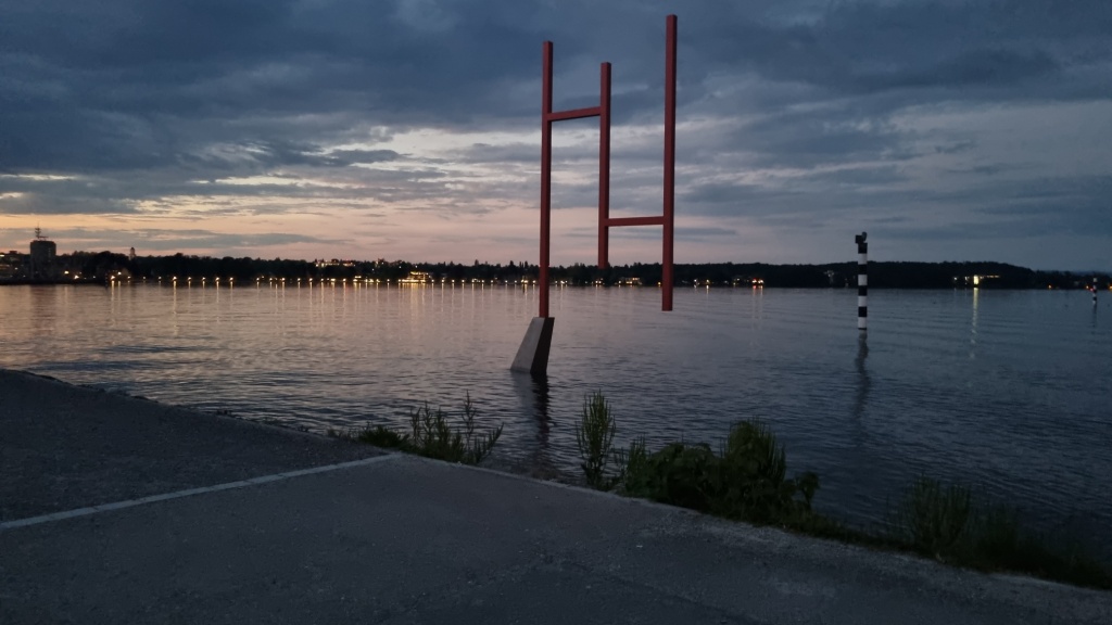 In Radolfzell machen wir eine kurze Pause in einer Gartenwirtschaft am See. Wir sind gespannt, ob wir überhaupt was bekommen oder unseren Impfausweis zeigen müssen. Aber alles easy, wir können problemlos draussen an einen Tisch sitzen und bekommen Getränke und Verpflegung. Nach dieser Pause heisst es weiterradeln nach Konstanz. Jetzt geht es auf schönen Radwegen bei Allensbach vorbei, dann beim Abzweiger zur Insel Reichenau vorbei und schon bald macht sich das Industriequartier von Konstanz bemerkbar und wir radeln am Gleis entlang in die Stadt. Hier hat es deutlich mehr Radfahrer unterwegs, vermutlich sind auch viele Konstanzer per Rad unterwegs. Wir erwischen sogar den Weg über die Fahrradbrücke, wo nur Fahrräder drüberfahren und eine Unterführung nur für Fahrräder. Toll, wie leicht es sich durch die Stadt fährt mit dem Rad, besser als mit dem Auto. Nur noch kurz das Velo übers Gleis schieben und langsam am Hafen entlang und schon sind wir über der Grenze und erreichen unser heutiges Etappenziel Kreuzlingen. Wir übernachten im Hotel bei der Bodensee Arena. Das Hotel ist eine Art Motel, schön eingerichtet mit grossem Bad und gut gelegen wenn man mit dem Velo unterwegs ist. Die Fahrräder können wir auch hier in einen abschliessbaren Raum stellen. Nachdem wir uns frisch gemacht haben, spazieren wir nach Konstanz und verbringen einen schönen Abend am Hafen bei gutem Essen und Trinken.