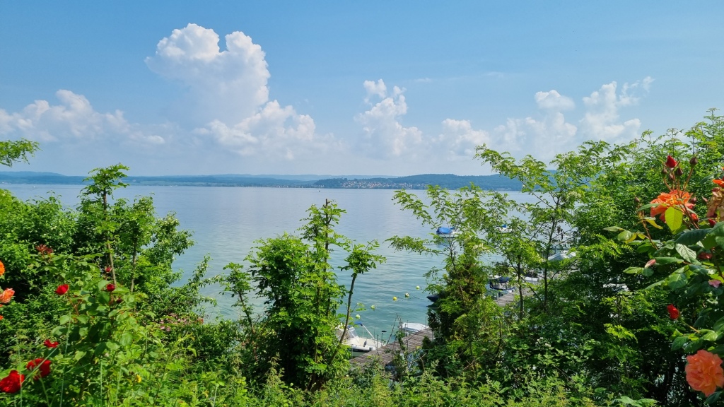 Nach der Gartenschau schlendern wir noch etwas durch Überlingen und genehmigen uns einen Eiskaffee. Den Abend dürfen wir hoch über dem Bodensee bei herrlicher Aussicht und einem feinen Grillabend mit Freunden geniessen.