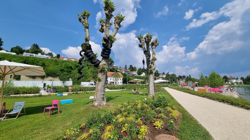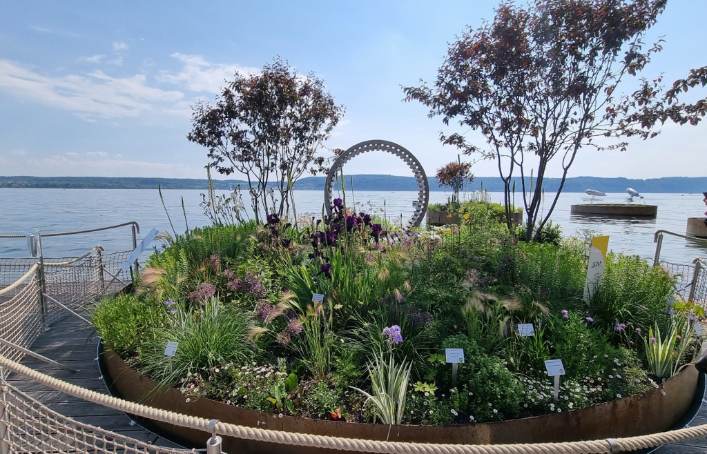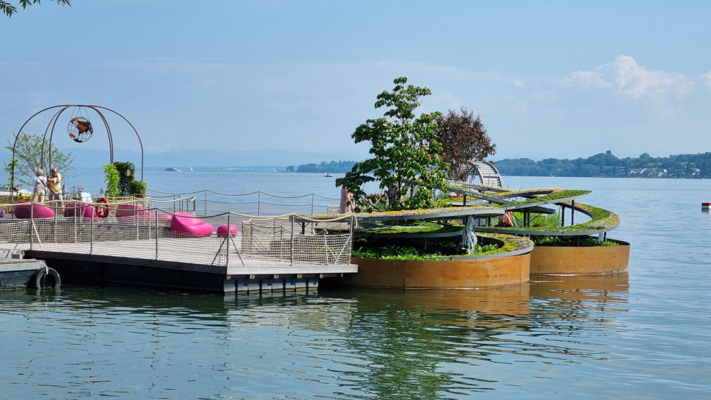 Der Uferpark ist sehr schön angelegt mit vielen unterschiedlichen Sitzmöglichkeiten. Danach besuchen wir noch die Villengärten mit den schwimmenden Gärten. Diese sind auch wunderschön gemacht. Es gäbe noch weitere Ausstellungsgärten aber leider ist die Zeit zu knapp.