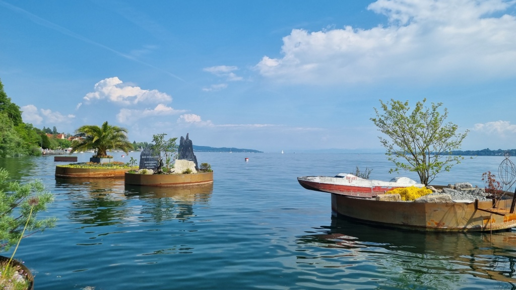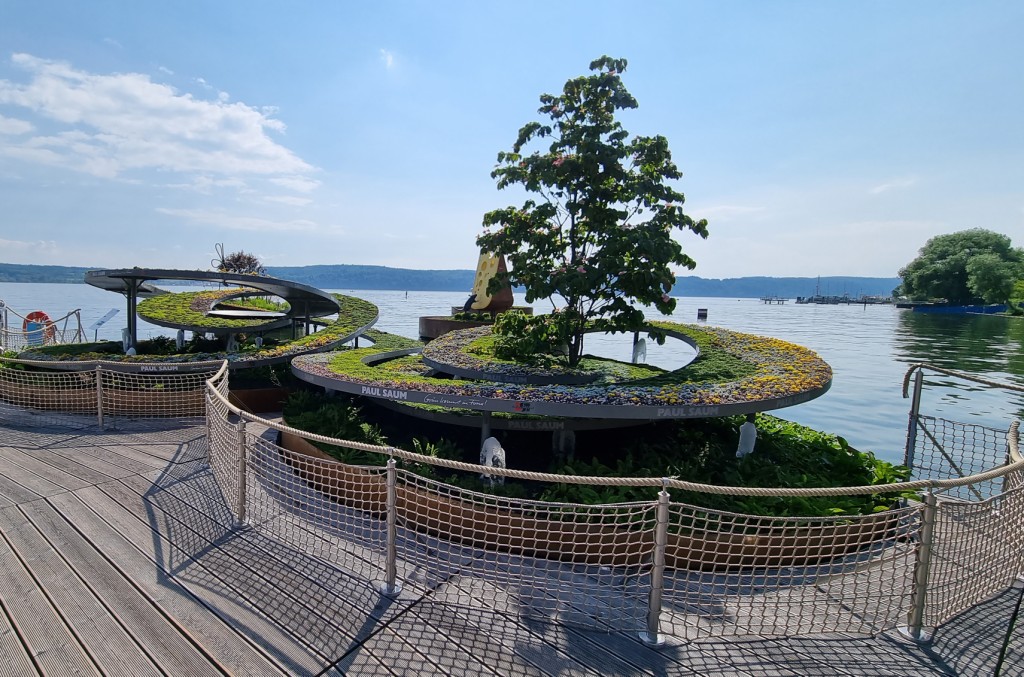 Wir machen uns kurz frisch und da das Wetter ja traumhaft ist wollen wir uns noch etwas von der Landesgartenschau in Überlingen ansehen. Der Eingang zur Gartenschau ist ganz in der Nähe des Hotels uns so laufen wir dem Seeufer entlang und schauen uns die schönen Gärten und Anlagen an. Auch deshalb haben wir heute unsere Tour mit dem Schiff abgekürzt, damit wir noch etwas von der Gartenschau sehen können.