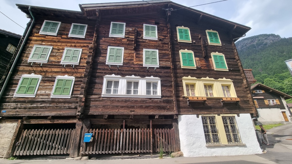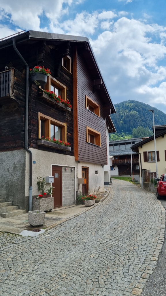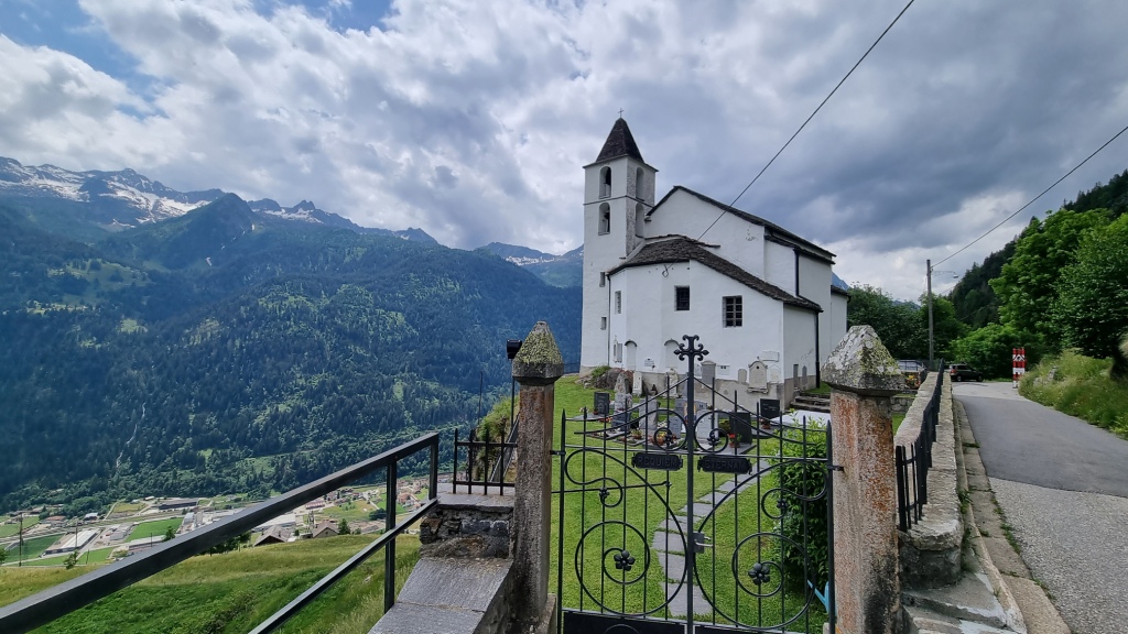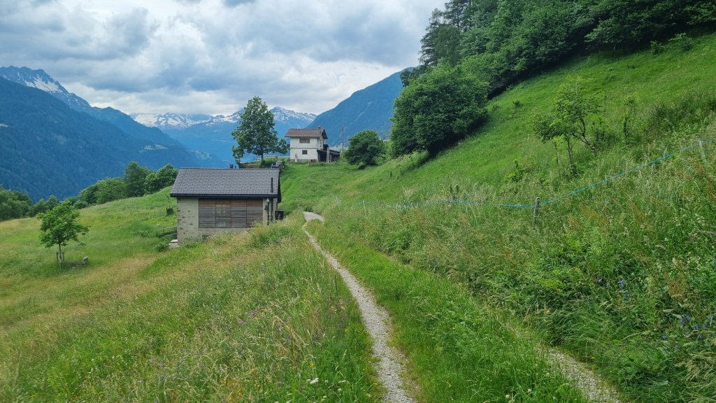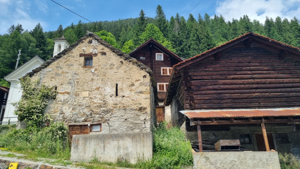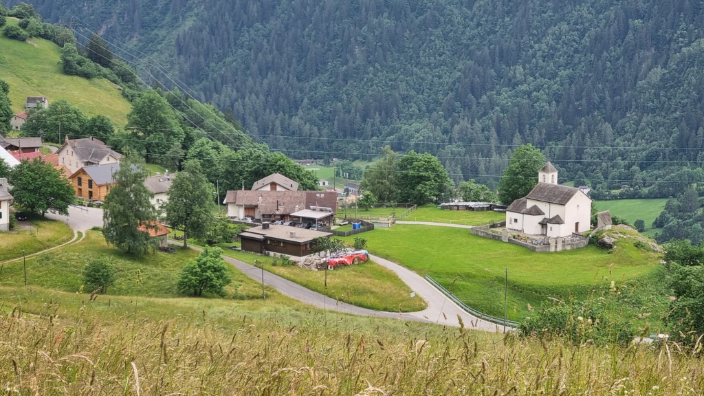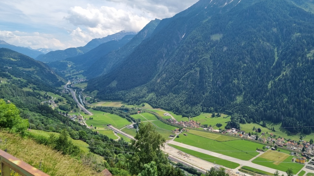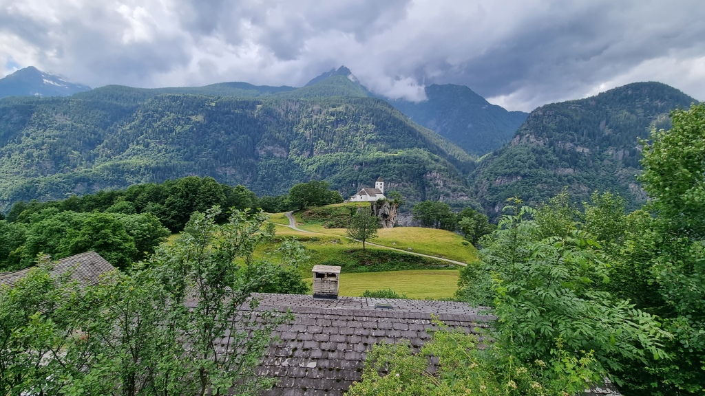 Am ersten Tag fahren wir von Locarno aus mit dem Auto nach Airolo. Das Auto können wir auf dem Hotelparkplatz kostenfrei stehen lassen. Sogleich machen wir uns auf den Weg unserer 1. Etappe. Der Wanderweg, der zum Trans Swiss Trail Nr. 2 gehört, führt uns von Airolo, das 1160 m.ü.M liegt, zuerst zum Weiler Valle und dann über einen Bach und durch Wiesen hinauf nach Madrano. Von hier aus können wir zurück nach Airolo blicken, weiter geht es aufwärts durch hohes Gras und dann einer schmalen Strasse entlang nach Brugnasco, das schon auf 1384 m.ü.M. liegt.