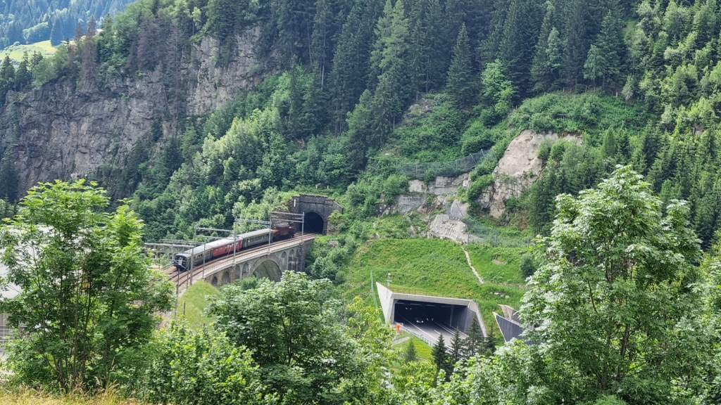 Auf dem Weg bietet sich eine schöne Aussicht auf die Leventina mit der Bahnstrecke, der Autobahn und den Tunnels. Weiter geht es auf der schmalen Asphaltstrasse nach Altanca, an der Ritom-Bahn vorbei, bis zum Dorf, das auf 1400 m.ü.M. liegt. Hier genehmigen wir uns in der Osteria Altanca ein gutes Mittagessen. Wir haben Glück, das Restaurant ist offen. Bis vor ein paar Tagen war es coronabedingt geschlossen.
