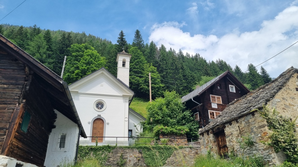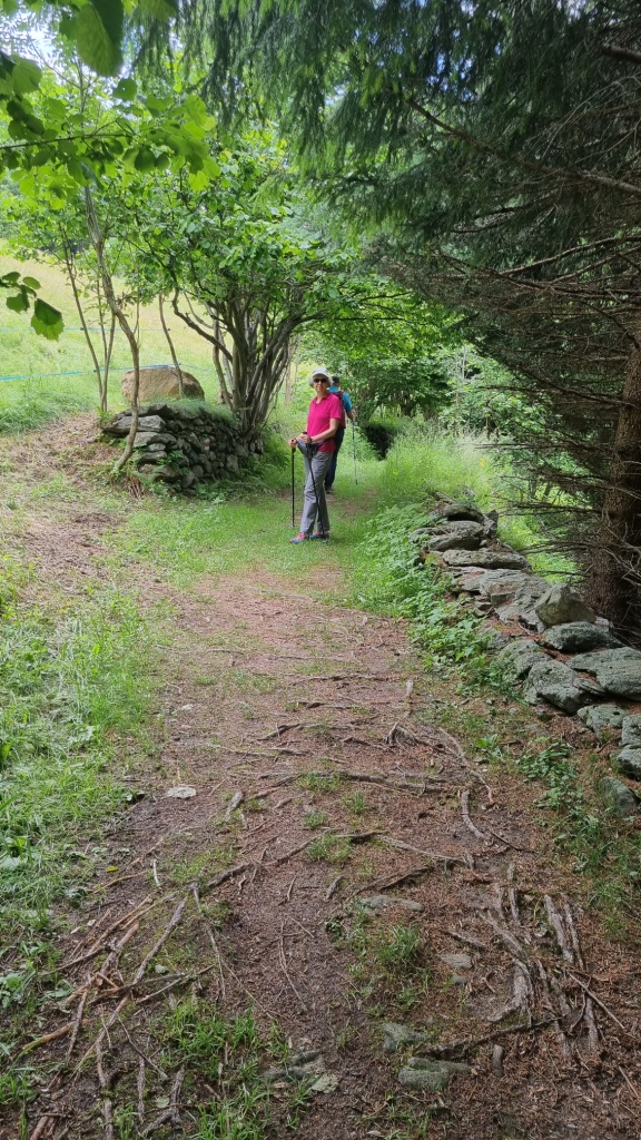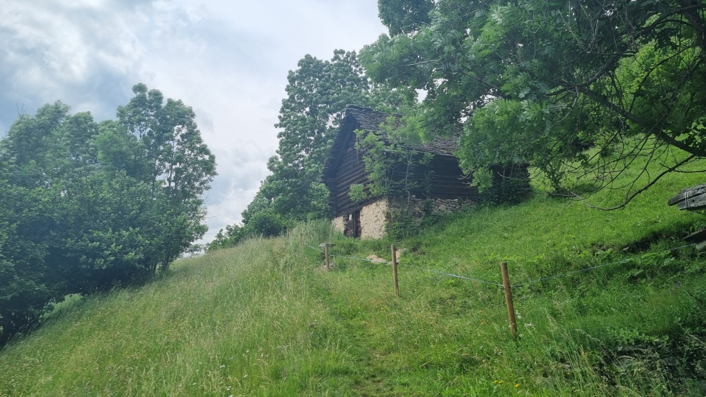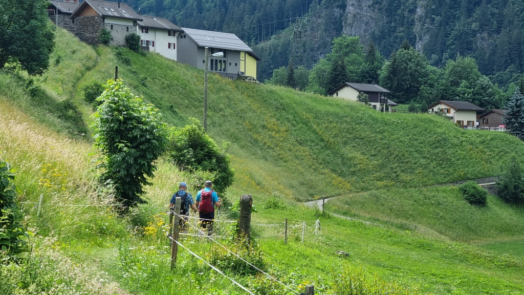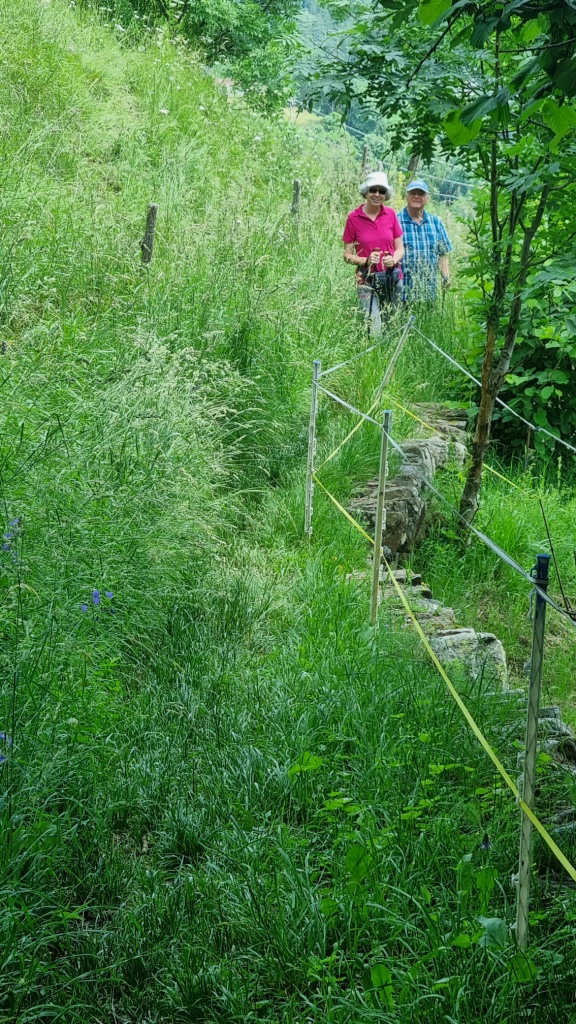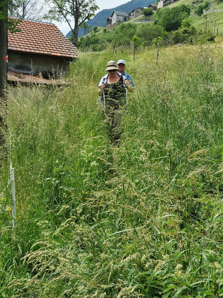 Bis Altanca brauchen wir etwas mehr als 2 Stunden. Die Zeiten auf den Wandertafeln sind für uns Langsamwanderer und alles Fotografieren-Wanderer und sowieso Gemütlichwanderer knapp bemessen. Nach dem feinen Lunch begeben wir uns auf den weiteren Weg bis Lurengo. Es geht zuerst noch der Strasse entlang, dann über einen Wiesenweg nach Deggio hinunter, das auf 1200 m.ü.M liegt. Das Gras auf den Wiesen steht noch sehr hoch, zum Teil verschwinden wir fast im Gras.