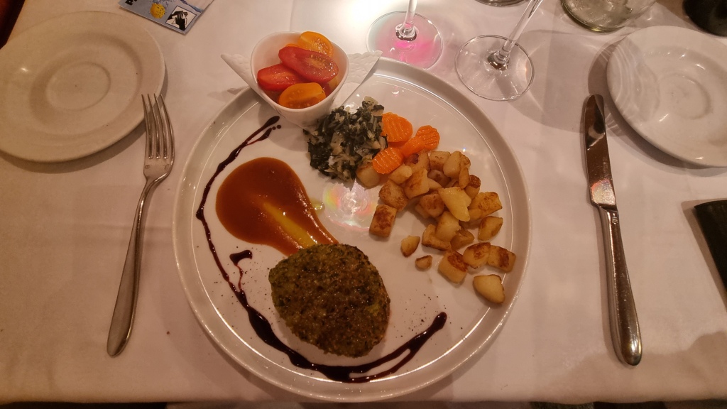 Mit dem Mini-Postauto fahren wir nach Ambri-Piotta und von dort mit dem Zug zurück nach Airolo. Die Fahrt dauert etwa 30 Minuten. Wir beziehen unsere Zimmer im Hotel, machen uns frisch und treffen uns wieder zum Abendessen im Hotelrestaurant. Das Essen im Hotel Forni ist sehr gut, schön präsentiert, preislich nicht allzu hoch und hat 13 Gault Millau Punkte. Wir waren begeistert.