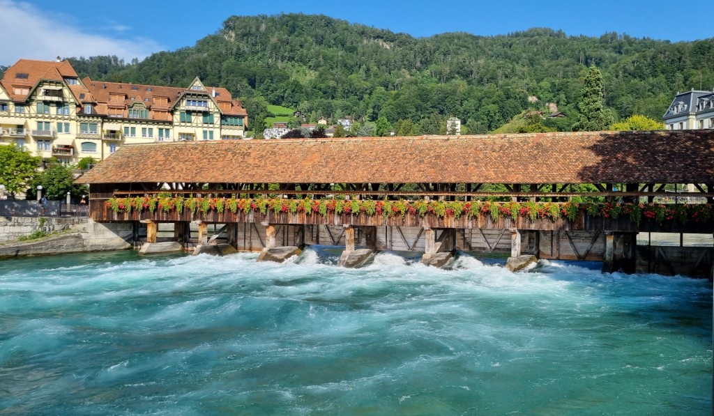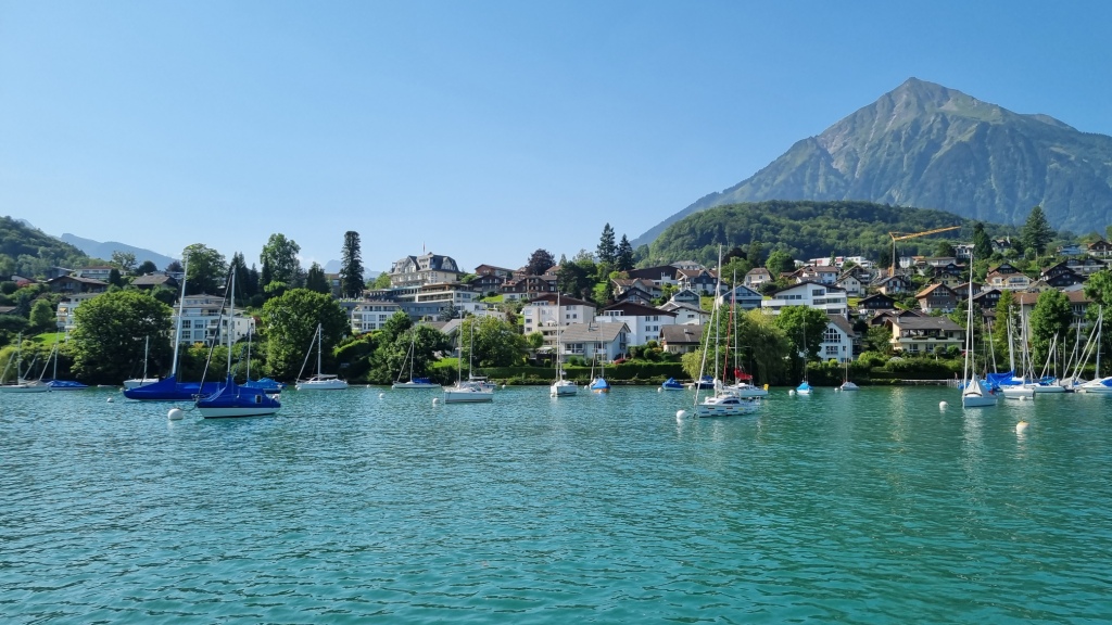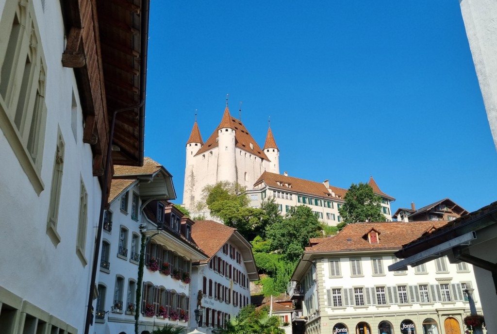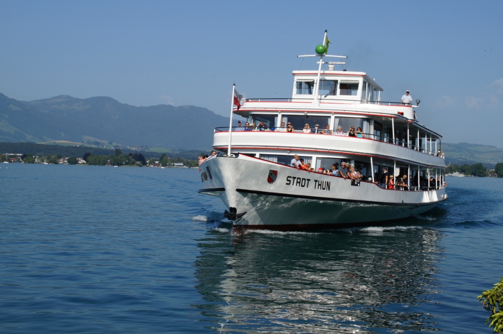 Nach der 2 stündigen, ausserplanmässigen Wanderung sind wir in Wimmis angekom-men und nehmen den Zug, der diesmal pünktlich kommt, nach Thun. Wir laufen durch die Altstadt von Thun, die wir bereits von unserem letzten Aufenthalt gut kennen und trinken noch etwas und genehmigen uns noch ein Glace, bevor wir mit dem Bus zurück nach Hilterfingen fahren.