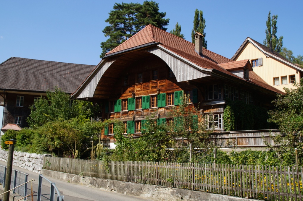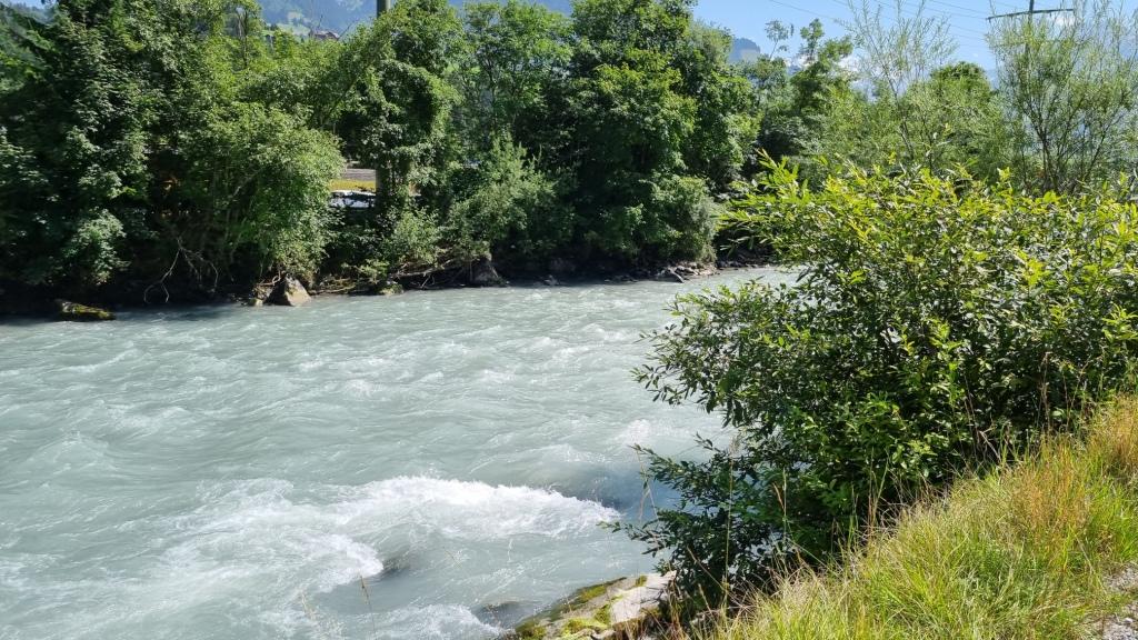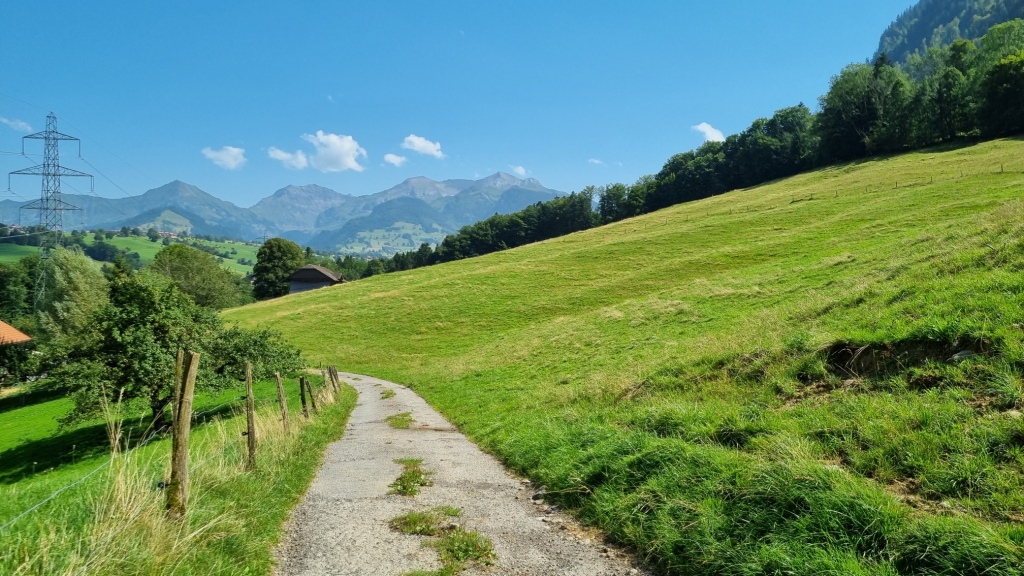 Unten angekommen wollen wir mit dem Zug wieder nach Spiez fahren und dann ein Stück dem See entlang laufen. Der Zug hat jedoch eine grosse Verspätung und so entscheiden wir uns, ein Stück von Mülenen zu laufen bis zur nächsten Bahnstation. So laufen wir zuerst der Kander entlang und dann durch schöne Wiesen und Dörfer nach Wimmis.