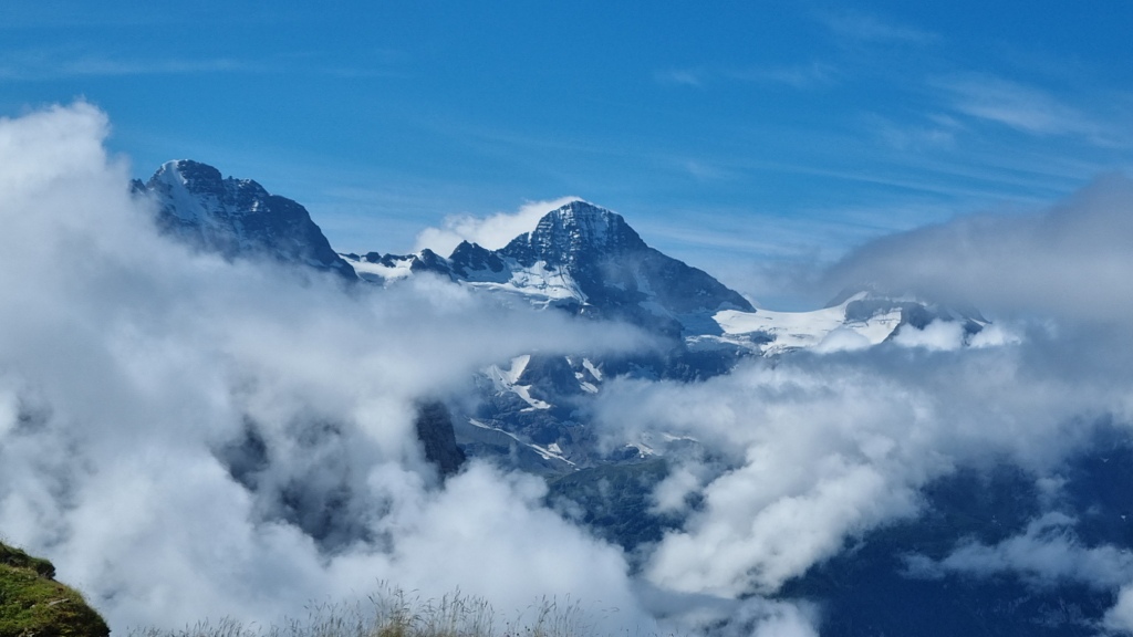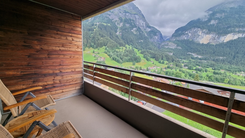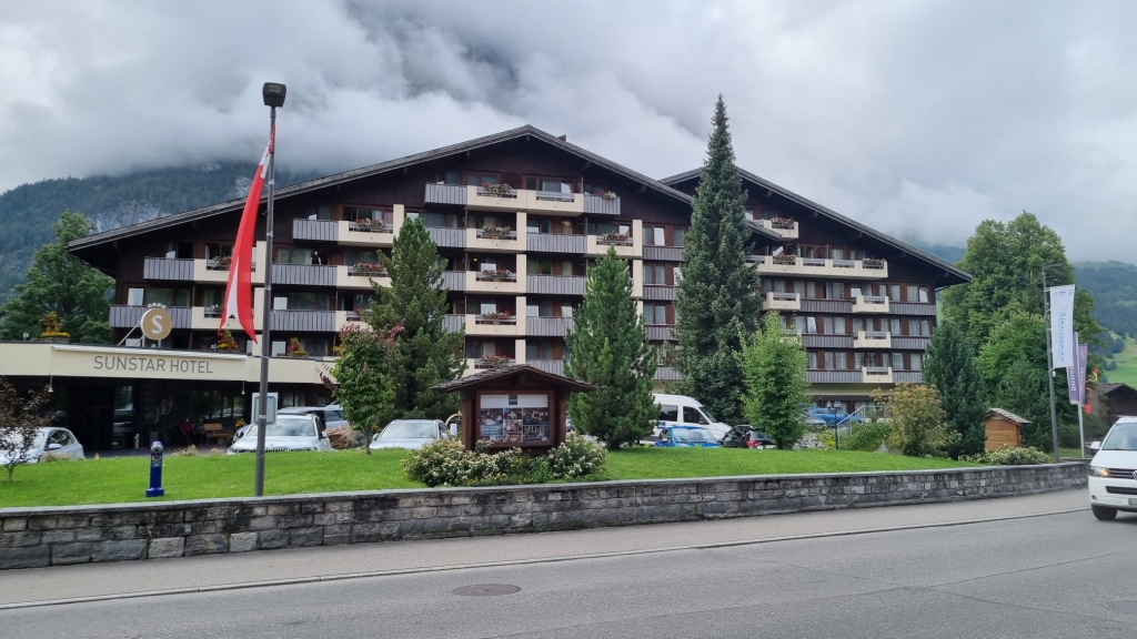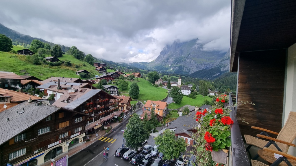 Nach dieser Stärkung fahren wir nach Grindelwald. Wir checken ins Hotel Sunstar Grindelwald ein. Das Zimmer ist schön gross, modern, das Bad hat leider eine Badewannendusche. Finde ich heutzutage nicht mehr so toll aber das ist Meckern auf hohem Niveau. Die Betten sind etwas hart, ein Topper kann an der Reception verlangt werden. Erfahren wir allerdings erst beim Auschecken. Naja, fürs nächste Mal dann halt. Wir haben einen schönen Balkon, leider verstecken sich die Berge hinter einer Wolkenwand.