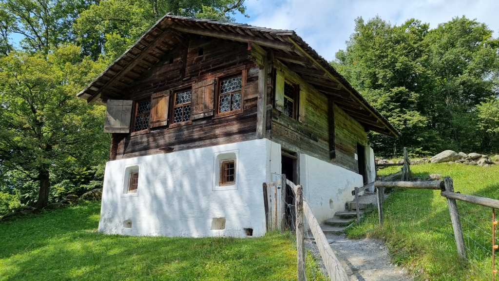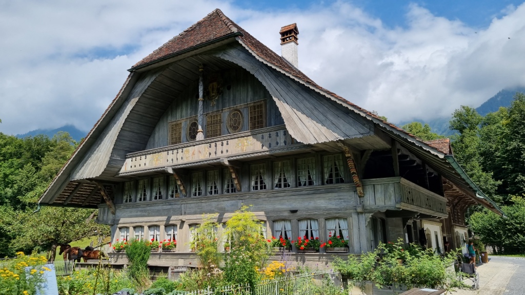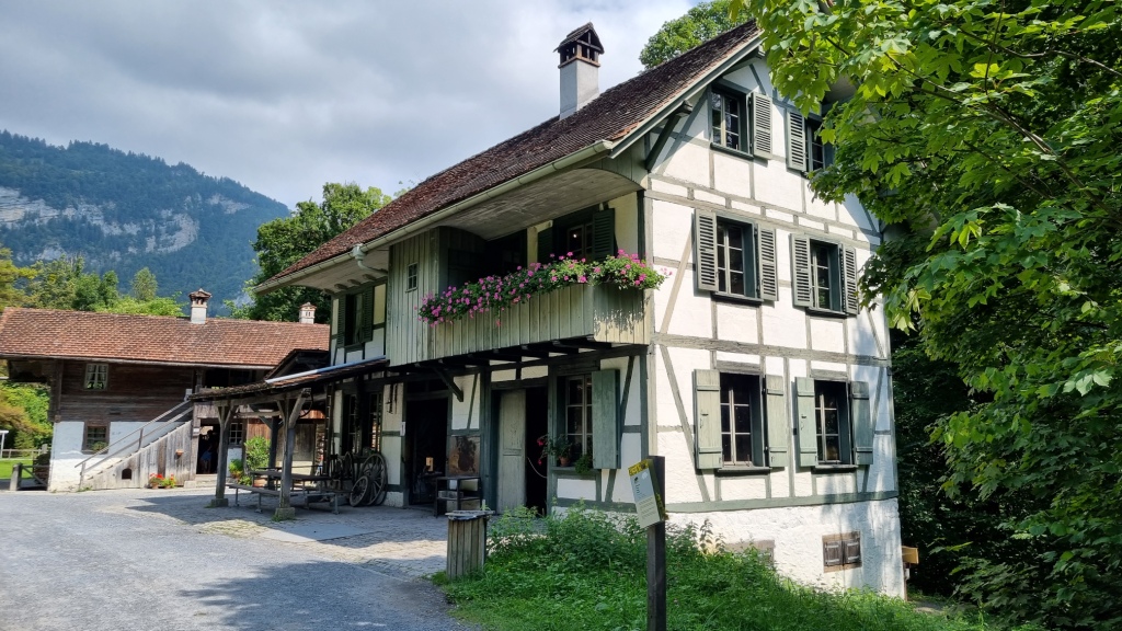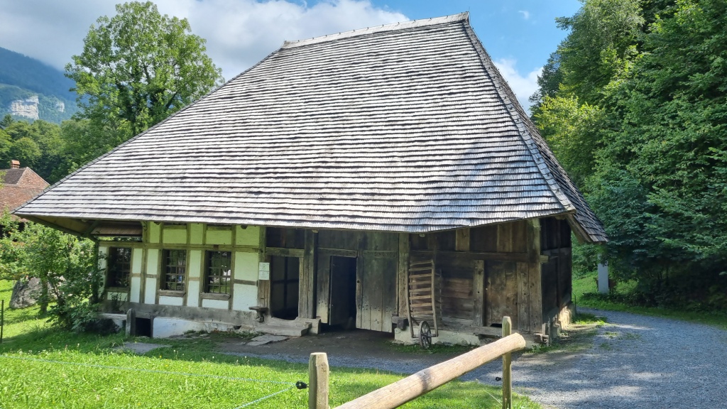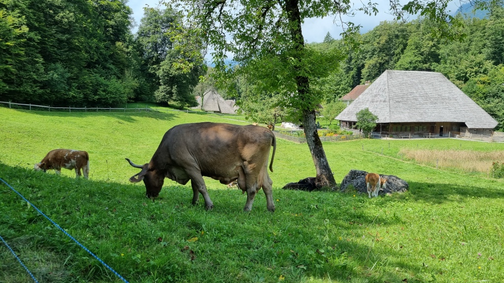 Nach dem Frühstück auf der Gartenterrasse im Hotel machen wir uns bereit für einen Ausflug ins Freilichtmuseum Ballenberg. Bis jetzt haben wir es nie dorthin geschafft. Also fahren wir mit dem Auto zum Freilichtmuseum und bekommen mit der Gästekarte sogar 20 % Rabatt auf den Eintritt. Das Gelände ist sehr weitläufig, es geht stellenweise hinunter und wieder hinauf aber es lohnt sich genügend Zeit zu haben und alles in Ruhe anzuschauen und auf sich wirken zu lassen. Uns hat es sehr gut gefallen.