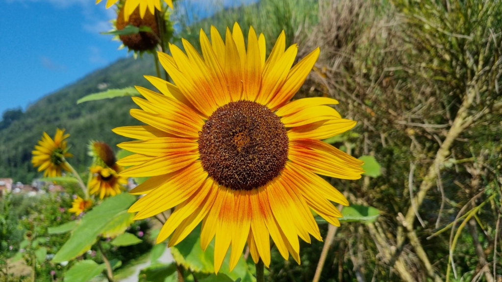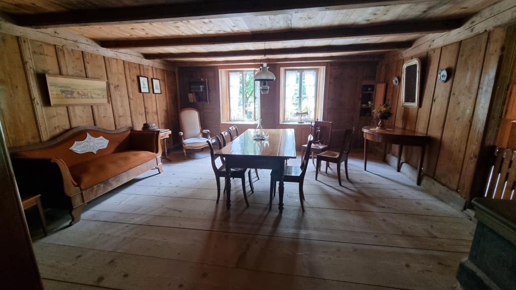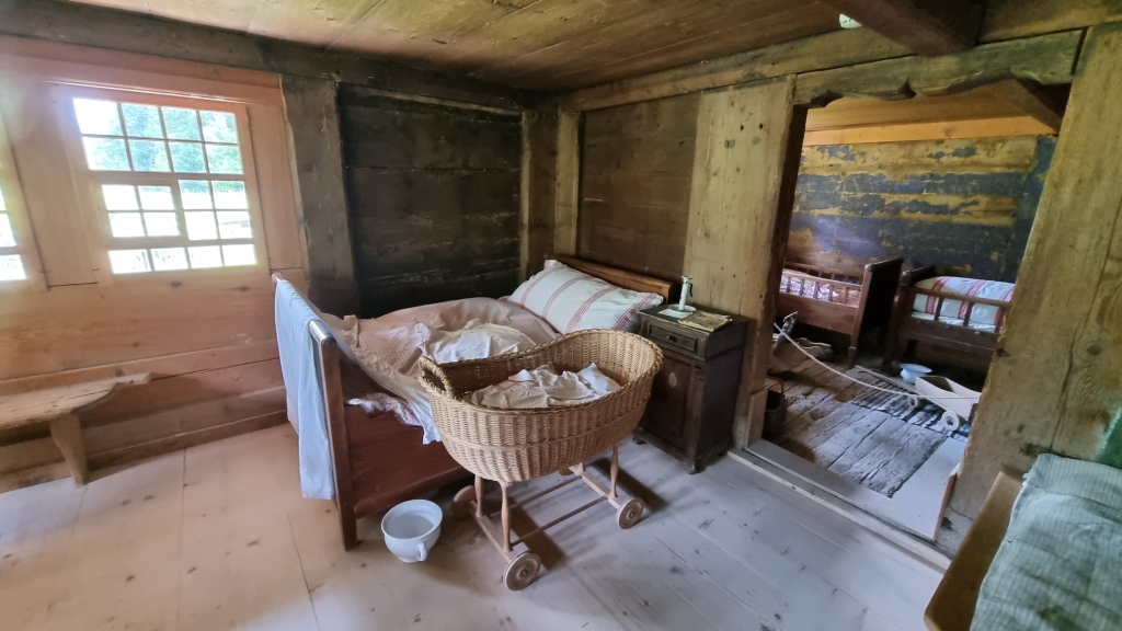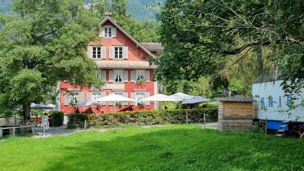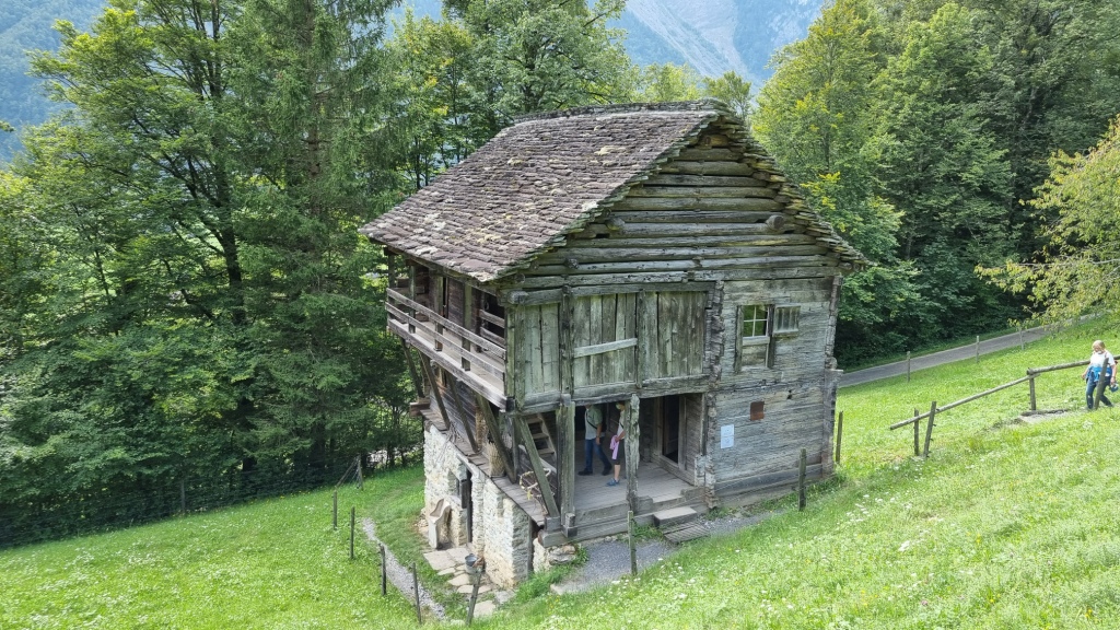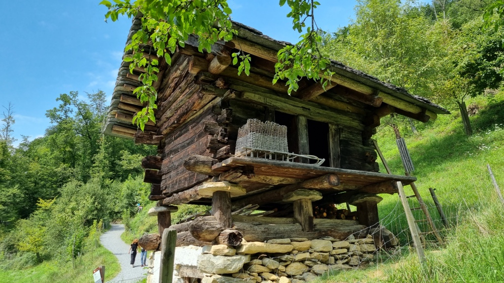 Nach dem Frühstück auf der Gartenterrasse im Hotel machen wir uns bereit für einen Ausflug ins Freilichtmuseum Ballenberg. Bis jetzt haben wir es nie dorthin geschafft. Also fahren wir mit dem Auto zum Freilichtmuseum und bekommen mit der Gästekarte sogar 20 % Rabatt auf den Eintritt. Das Gelände ist sehr weitläufig, es geht stellenweise hinunter und wieder hinauf aber es lohnt sich genügend Zeit zu haben und alles in Ruhe anzuschauen und auf sich wirken zu lassen. Uns hat es sehr gut gefallen.