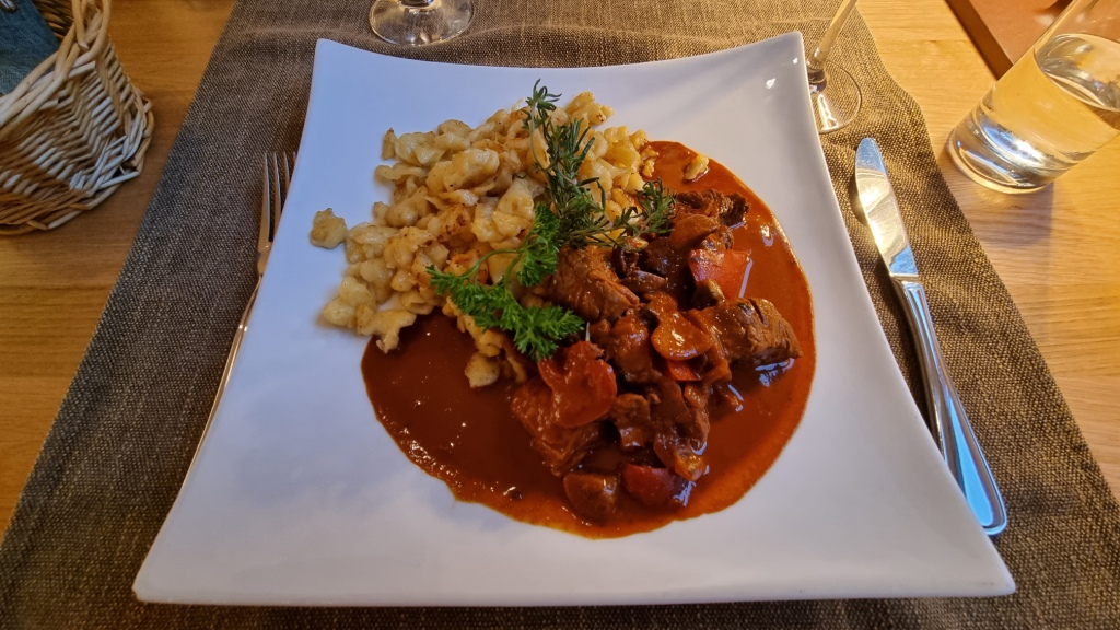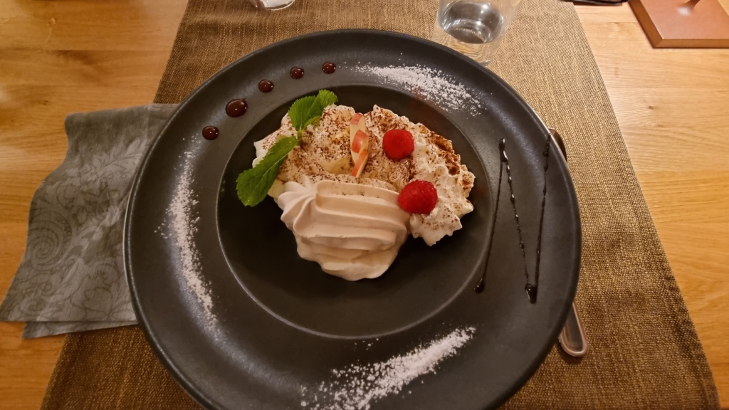 Wir ruhen uns im Hotel etwas aus, nehmen den Apéro im schönen Garten und lassen uns anschliessen im Restaurant Q kulinarisch verwöhnen. Eine „Ämmitaler Merängge mit viu Nidle“ darf natürlich nicht fehlen und schmeckt herrlich. So lassen wir den Tag ausklingen und beenden unsere Ferienwoche im Berner Oberland.