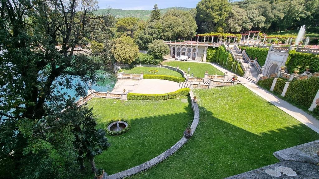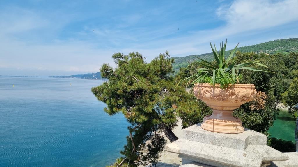 Wir umrunden das Schoss, sehen uns den herrlichen Garten an und bestaunen die Sicht aufs Meer. Die Sonne scheint und wir geniessen die warmen Temperaturen. Danach machen wir uns auf den Weg nach Triest. Das Auto parkieren wir am Bahnhof in einer ehemaligen Lagerhalle, die zu einer Parkgarage umgebaut wurde. Die Auffahrt ist sehr schmal geschnitten, zum Glück haben wir ein kleineres Auto, möchte nicht wissen wie man das mit einem SUV schafft. Zu Fuss geht es dann 5 Minuten zum Hotel NH Trieste, wo wir unsere Zimmer beziehen.
