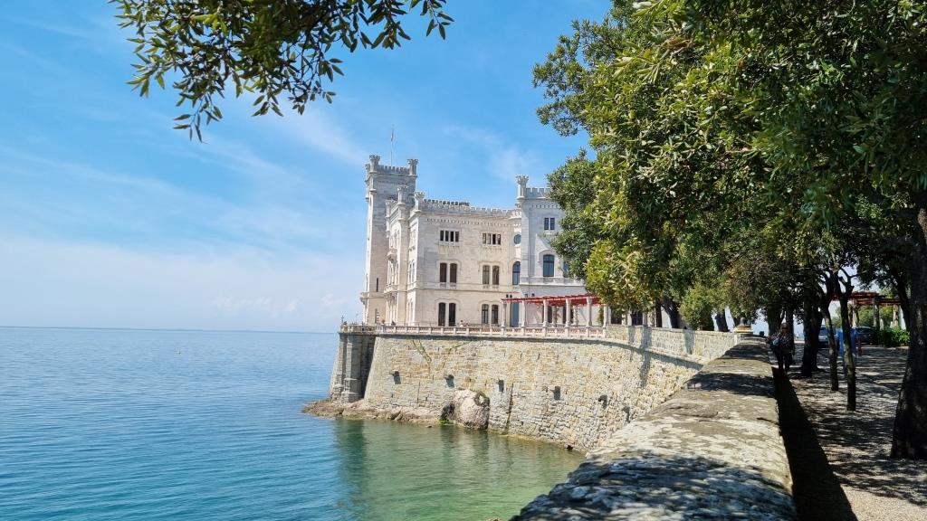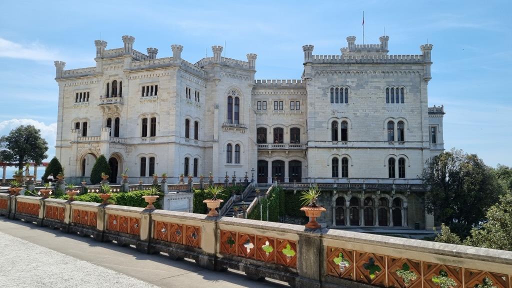 Auf unserem Roadtrip durch Kroatien besuchen wir bei der Anreise noch die italienische Stadt Triest. Wir bleiben auch hier, wie in Padua, eine Nacht. Von Padua nach Triest braucht man knapp 2 Stunden. Unterwegs machen wir Halt beim Castello Miramare vor Triest. Wir sehen uns das Schloss, das der Bruder des österreichischen Kaiser Franz-Joseph I, Maximilian, bauen liess von aussen an. Das Schloss liegt sehr schön mit herrlicher Sicht aufs Meer, die Gartenanlage ist sehr schön gemacht.