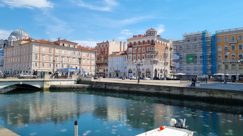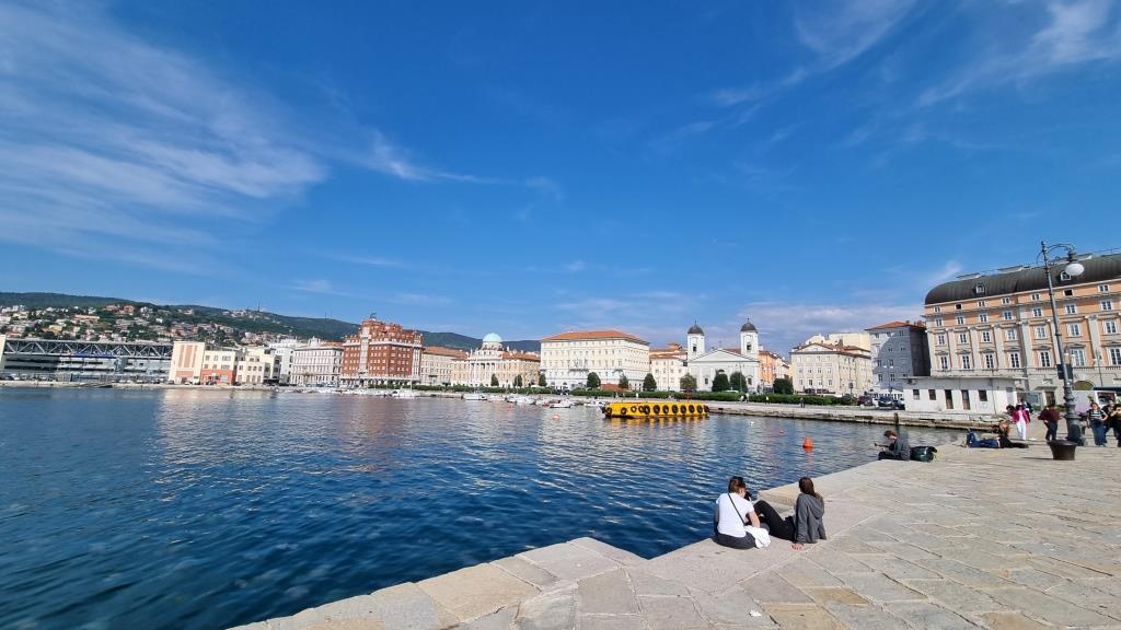 Wir kommen zuerst am Canale Grande vorbei, der gesäumt ist von grossen monumentalen Gebäuden aus der Zeit der Habsburger. Weiter spazieren wir zur Piazza dell’Unità d’Italia. Hier steht das eindrückliche Rathaus und die Kommunalverwaltung sowie weitere imposante Paläste. Wir spazieren weiter durch die Gassen und kommen dann beim Denkmal für Maximilian zum Hafen von Triest und schlendern dann den Weg am Meer zurück zum Hotel.