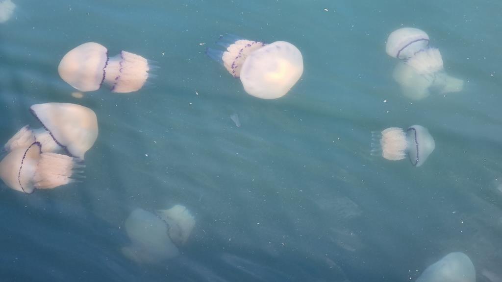 Beim Canale Grande wundern wir uns über die vielen riesigen Quallen, die sich hier tummeln. Sehen aus wie Nachtischlampen.