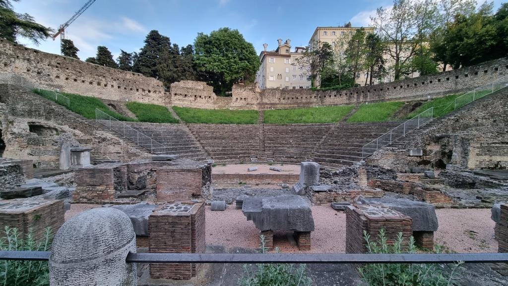 Bei der Suche nach einem Restaurant kommen wir noch beim Teatro Romano vorbei, einem Amphitheater aus der Römerzeit, das mitten in der Stadt ist. Wir finden dann ein nettes Restaurant in der Altstadt, wo wir draussen, bei angenehmen Temperaturen ein gutes Abendessen verköstigen können.