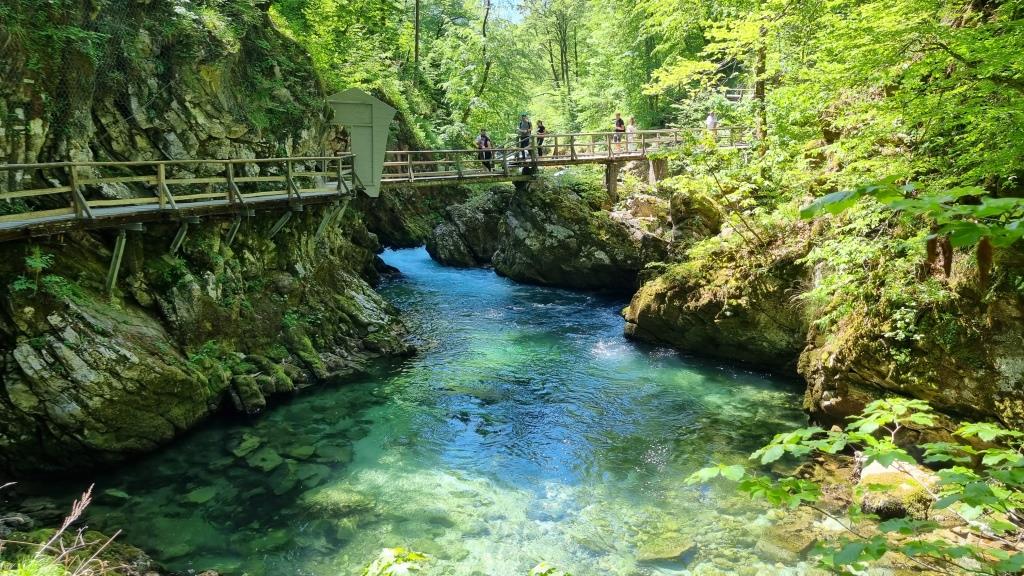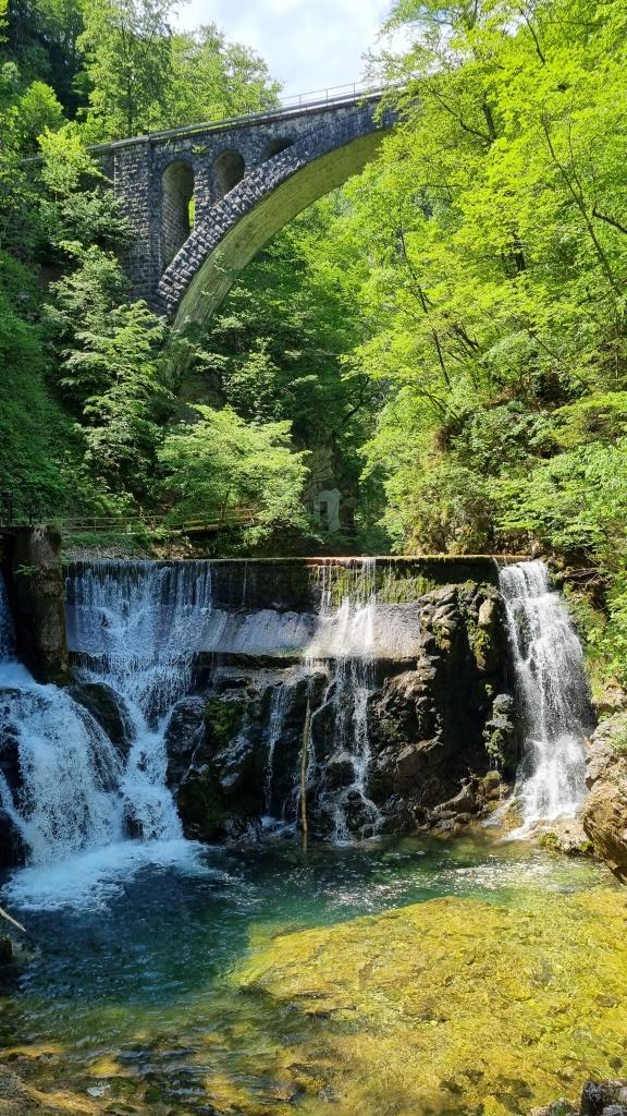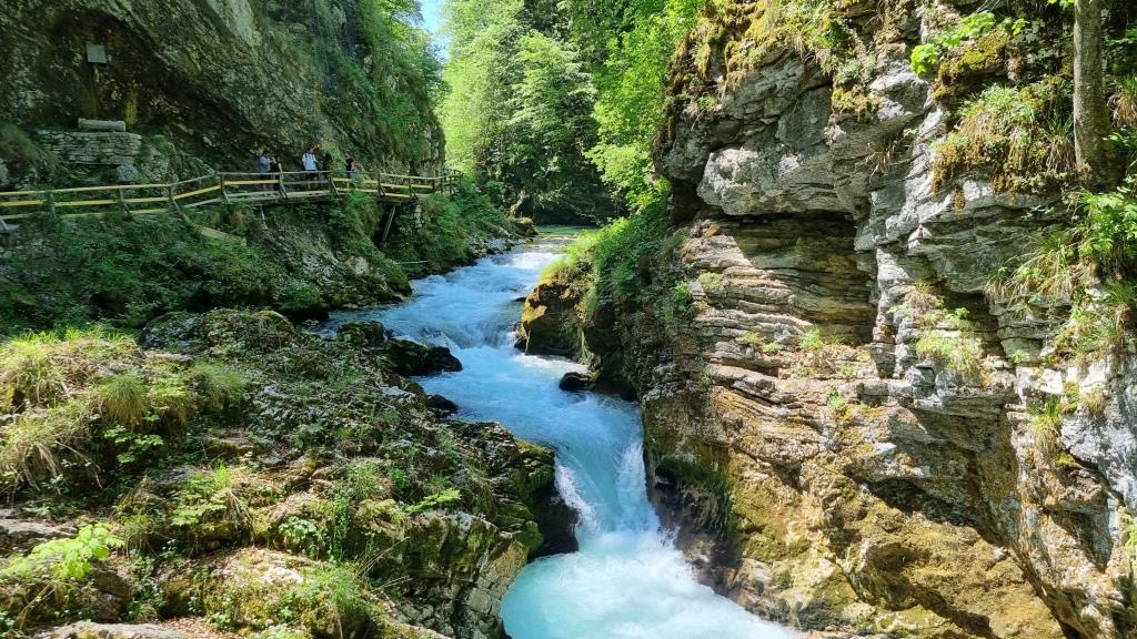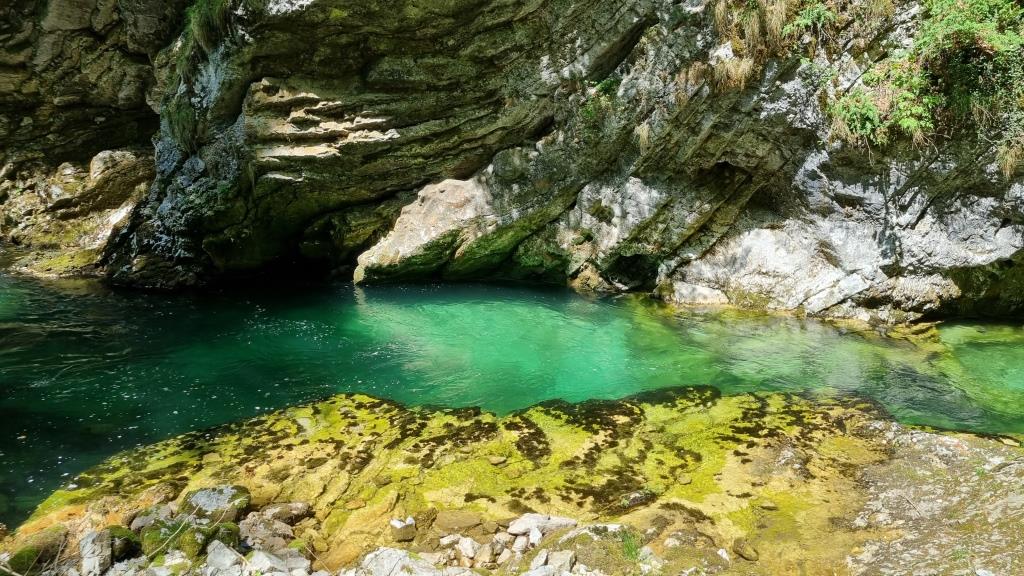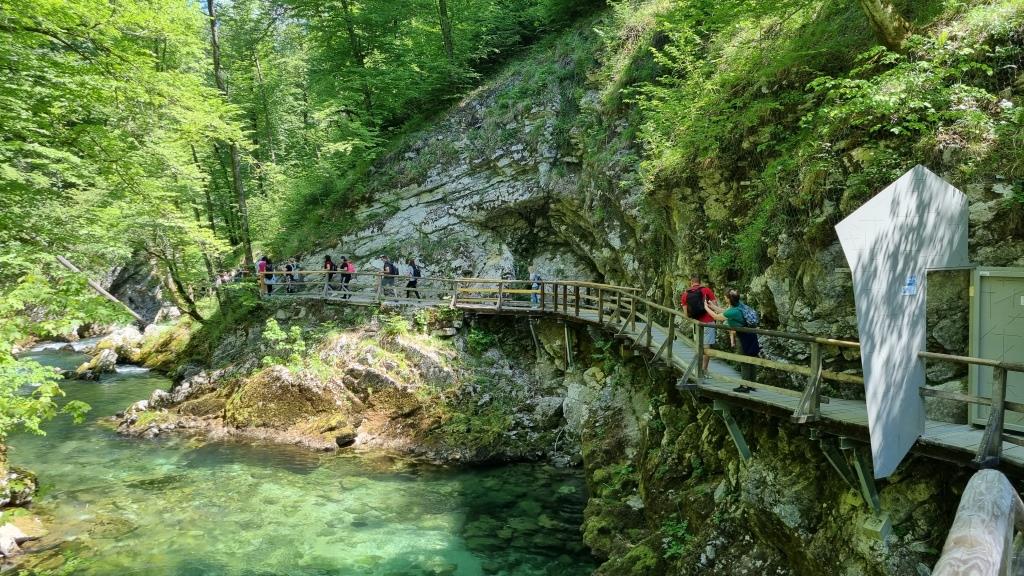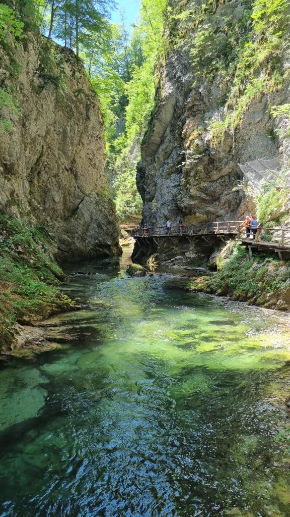 Bei unserer Rückreise aus Kroatien verbringen wir noch 2 Tage in Slowenien. Einen Tag sind wir in Ljubljana und einen Tag in Bled. Aber bevor wir Bled besuchen, sehen wir uns noch den Vintgar Klamm in der Nähe von Bled an. Wir parkieren unser Auto am Parkplatz am Ende der Schlucht und laufen zuerst durch den Wald zum Eingang. So sind wir nach der Schluchtenwanderung direkt beim Auto. Die Schlucht ist in etwa 1,6 km lang und es geht nur in eine Richtung. Also laufen wir zuerst einen einfachen Wanderweg zum Eingang der Schlucht. Hier zahlt man 10 E Eintritt. Dann folgt man dem spektakulären Weg über Brücken und in den Fels gehauenen Stegen dem sprudelnden Wasser entlang bis zum Ausgang der Schlucht. Das Wasser der Radovna schimmert smaragdgrün, herrlich. Wir können uns gar nicht sattsehen.
