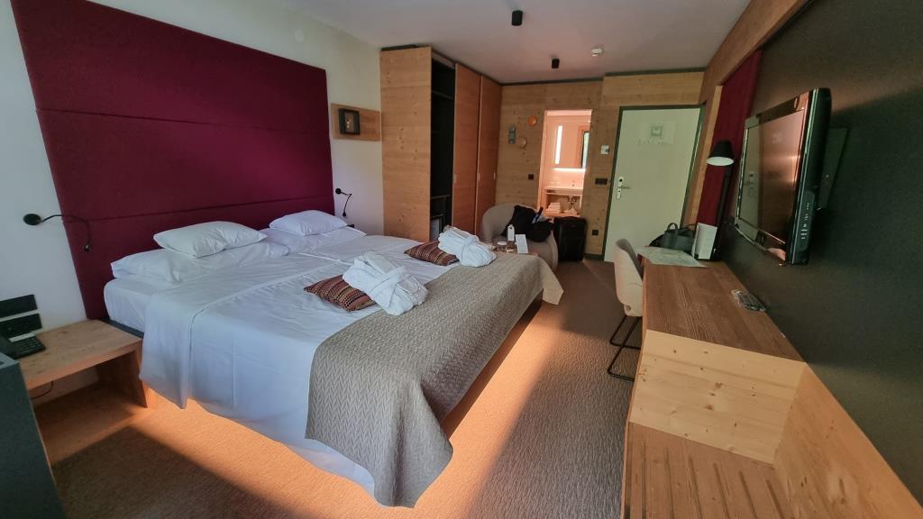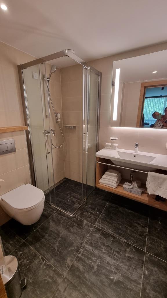 Wir sind begeistert. Dieser Rundgang hat uns sehr gut gefallen. Am Ende der Schlucht laufen wir noch ein kleines Stück hoch bis zum Parkplatz und fahren dann nach Bled. Hier haben wir ein Zimmer im Rikli Balance Hotel, gebucht. Ein sehr schönes Wellnesshotel mit grosser Poolanlage. Wir bekommen ein schönes Zimmer mit Balkon und müssen natürlich gleich die Wellnessanlage ausprobieren.