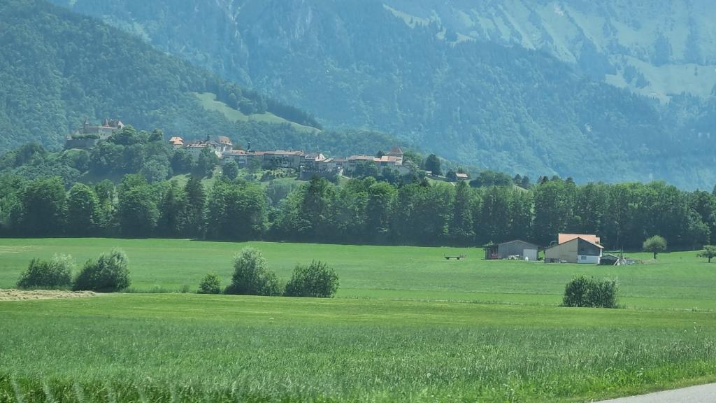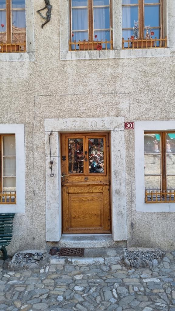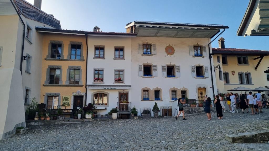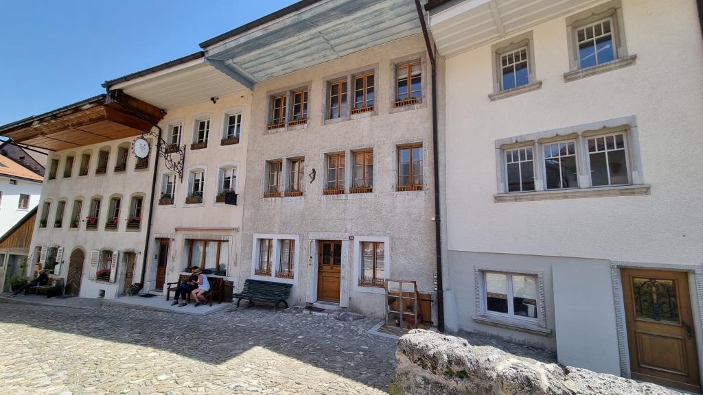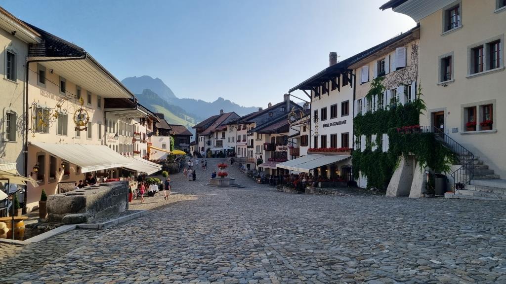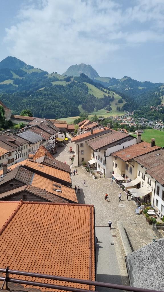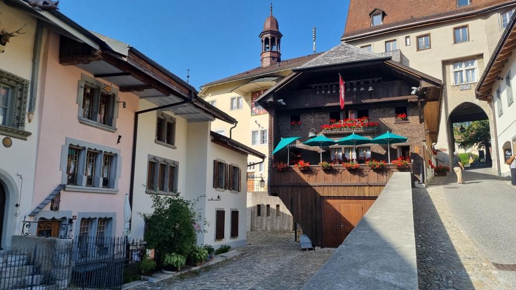 Im Juni 2022 besuchen wir für ein paar Tage meinen Cousin, der im schönen, mittelalterlichen Städtchen Gruyères im Kanton Fribourg wohnt. Schon bei der Anreise sehen wir das Dorf und das Schloss aus der Ferne. Das Auto müssen wir ausserhalb des Dorfes parkieren, da Gruyères verkehrsfrei ist. Wir haben für 4 Nächte ein Zimmer im Soleil de Gruyères reserviert.