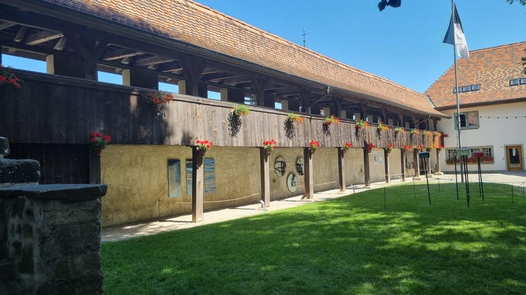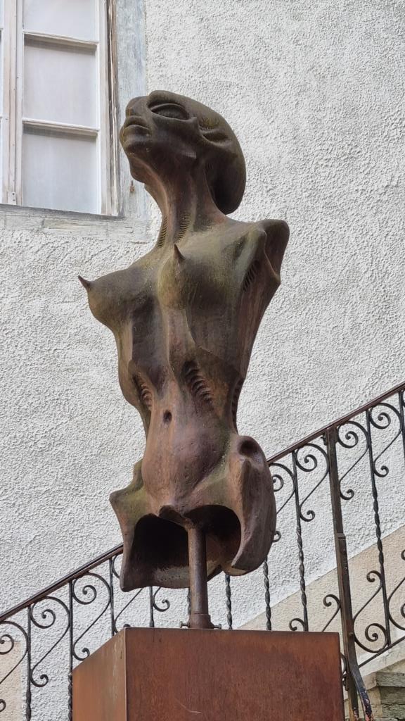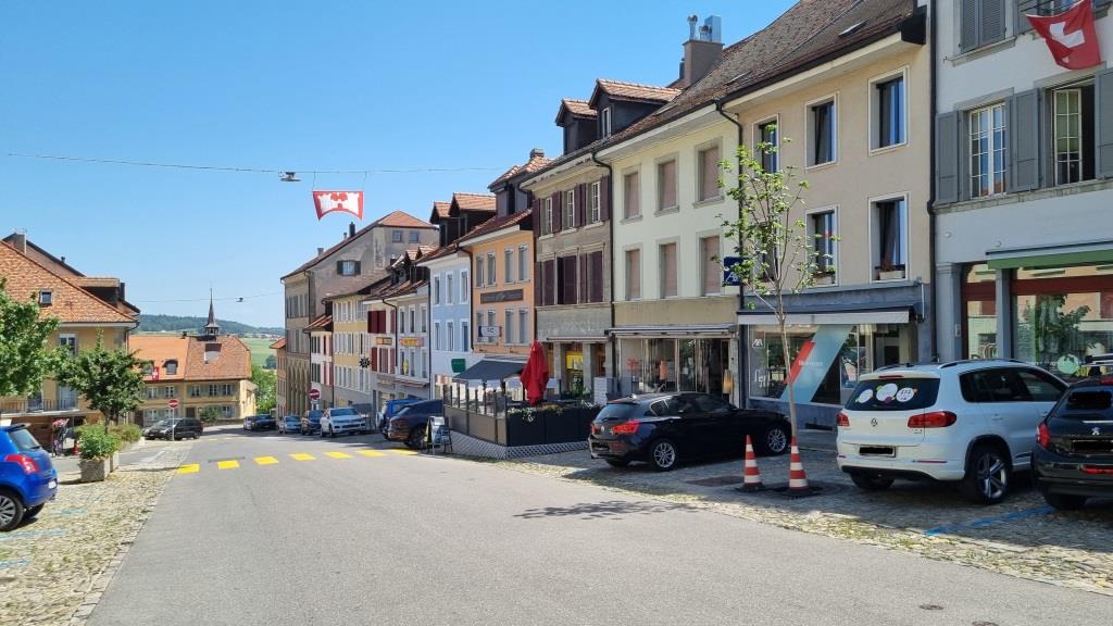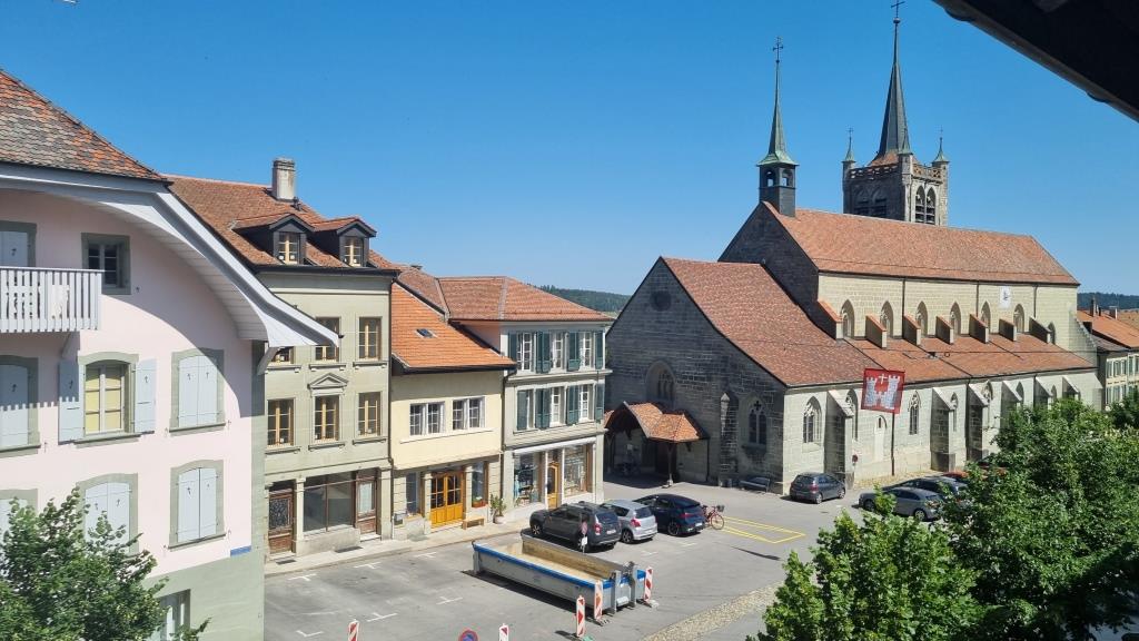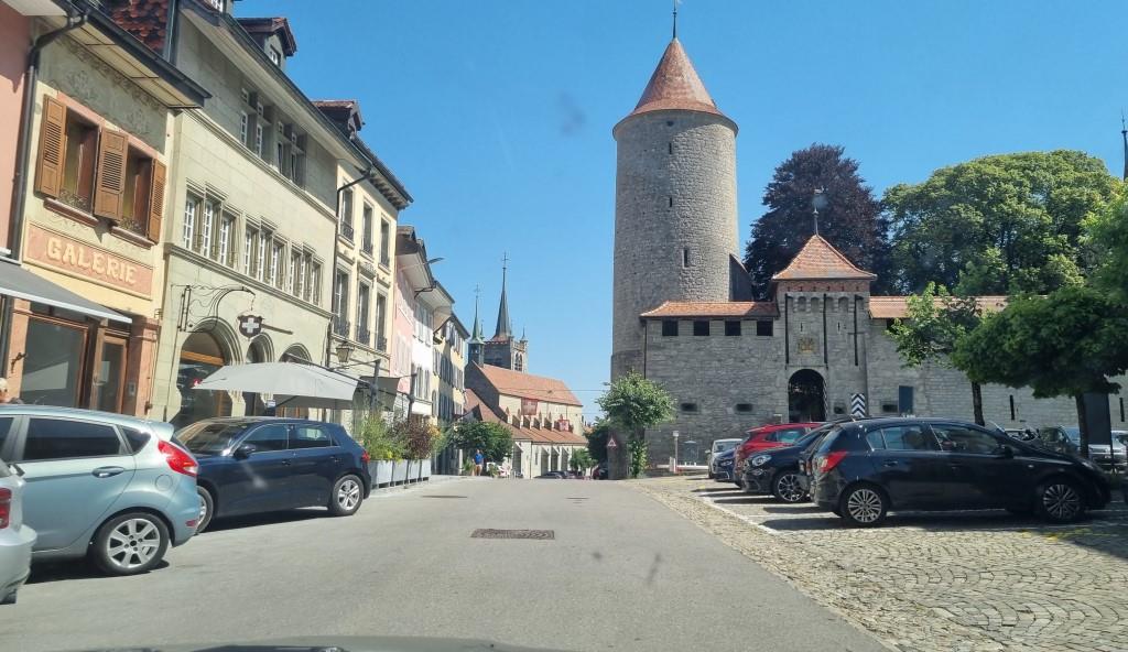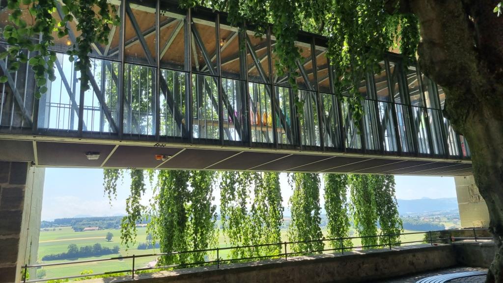 Am nächsten Tag fahren wir nach Romont. Auch hier ist die Altstadt mit dem Schloss auf einem Hügel. Wir schauen kurz in den Schlosspark in dem sich ein Glasmuseum befindet und spazieren durch die Gassen der Stadt, dann fahren wir weiter.