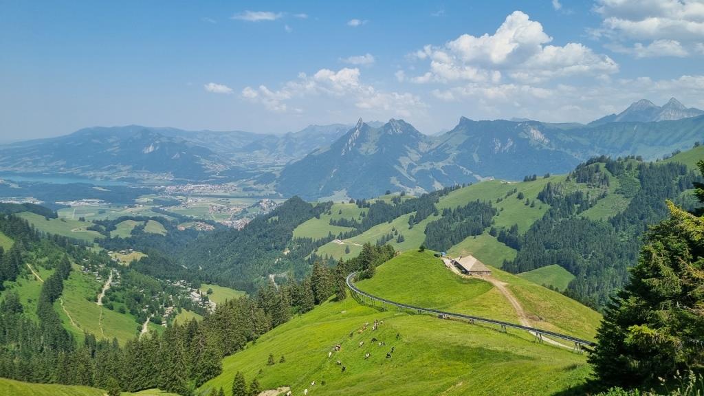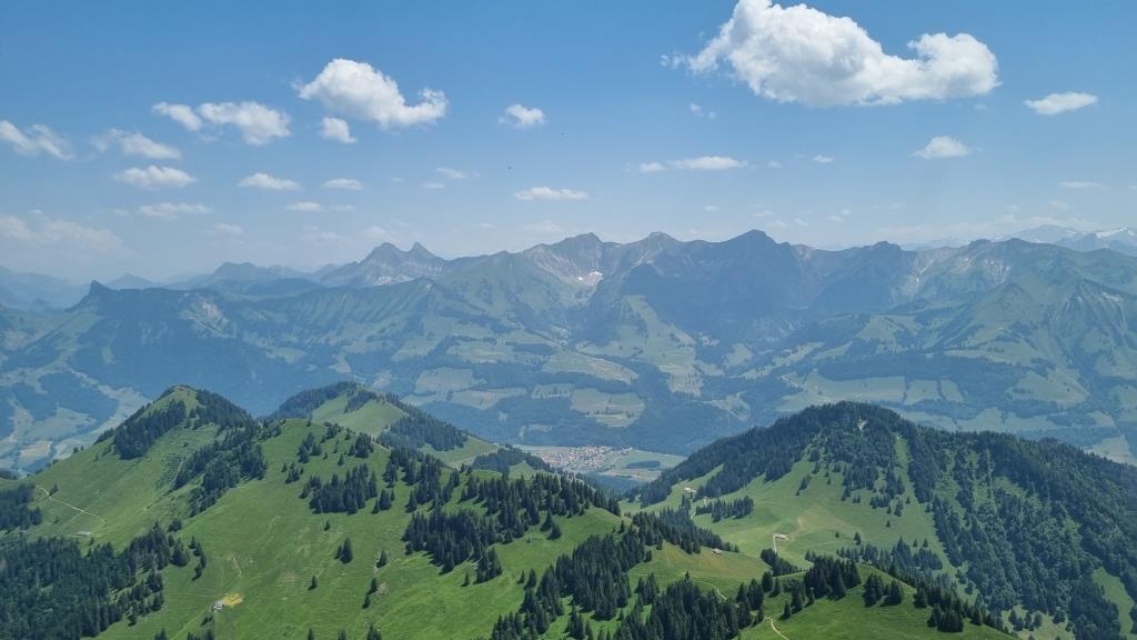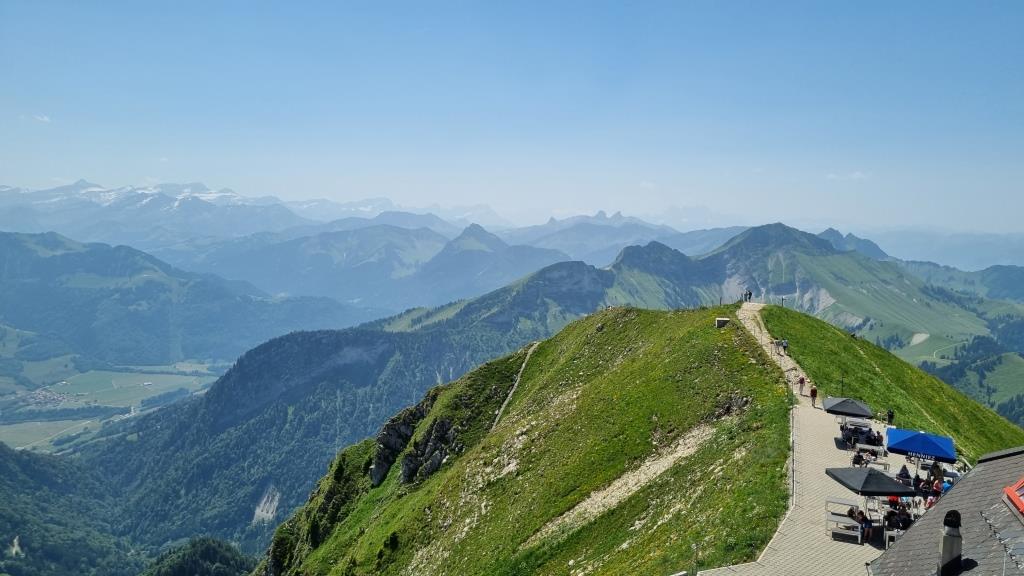 Am nächsten Tag beschliessen wir einen Ausflug auf den Moléson, den beliebten Berg der Freiburger Alpen, zu machen. Wir fahren zum Dorf Moléson und von dort mit der Standseilbahn bis Plan Francey. Von dort aus geht es weiter mit der Seilbahn auf den 2002 m hohen Moléson.