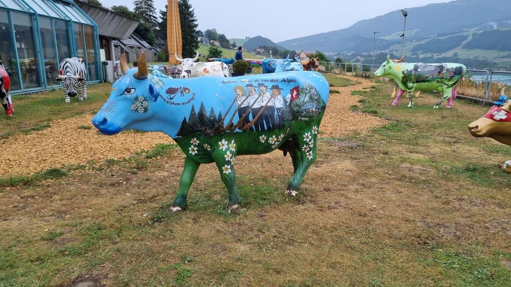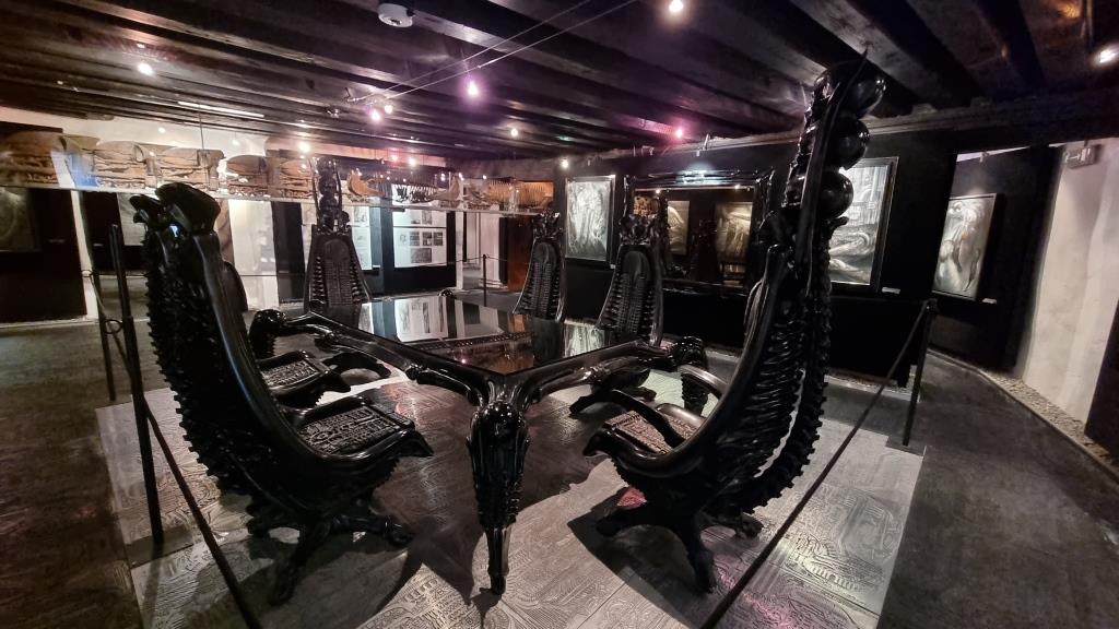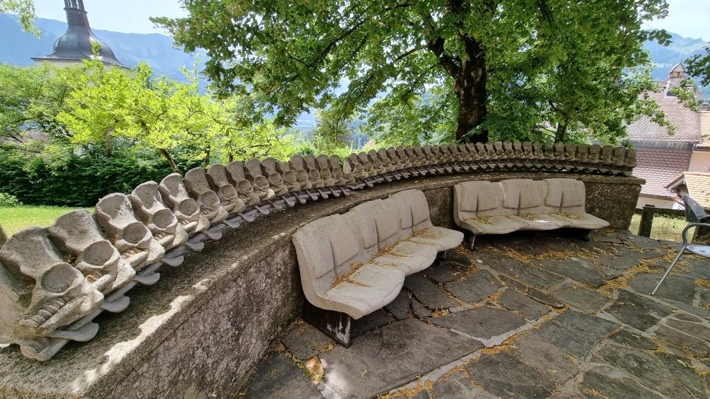 Wir verbringen den Nachmittag bei einer Cousine im schönen Garten und fahren am späteren Nachmittag wieder zurück nach Gruyères. Dort besichtigen wir das H.R. Giger Museum. Die futuristischen Bilder und Skulpturen sind speziell, zum Teil gruselig aber auch interessant. Die Bar im angrenzenden Haus ist ganz im Stil von H.R. Giger eingerichtet und wir haben einen unverschämt teuren Gin Tonic dort getrunken.