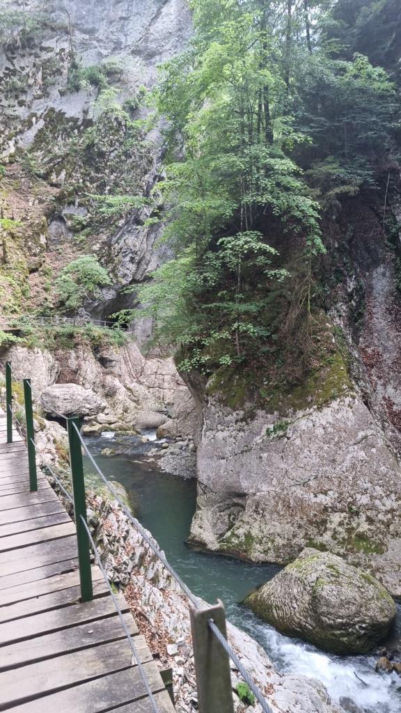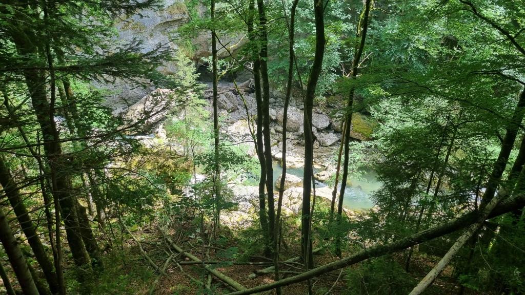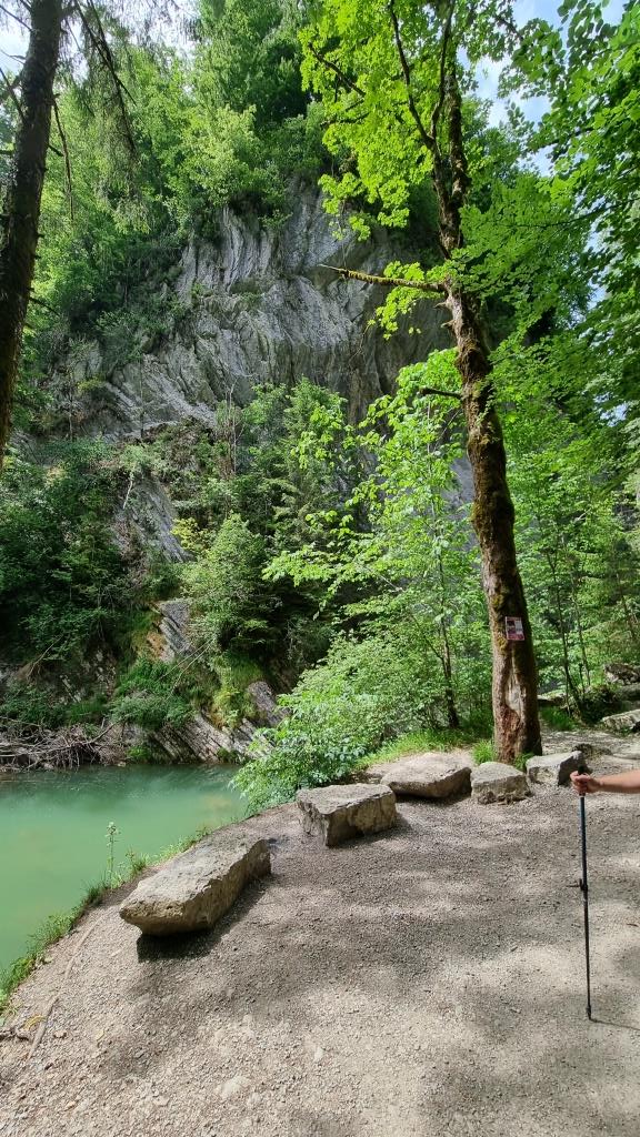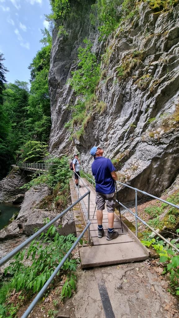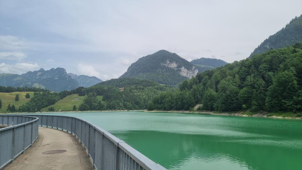 Am letzten Tag unseres Aufenthaltes machen wir eine kurze Wanderung durch die Jaunbachschlucht bis zum Lac de Montsalvens. Der Weg führt auf und ab über steile Treppen durch die imposante Schlucht, über Brücken und durch Tunnels bis zum Stausee. Eine schöne Wanderung, die beliebig verlängert werden kann bis Charmey. Wir begnügen uns mit diesem kurzen Teilstück, denn unser Kurzurlaub geht zu Ende.