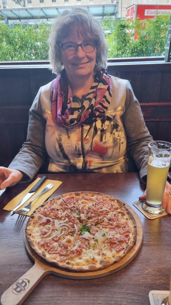 Das Hotel ist neu renoviert, die Zimmer schön eingerichtet, das Bad sehr modern und wir haben sogar Sicht auf den Jet d’Eau. Wir stellen nur kurz unser Gepäck ab und begeben uns sogleich in eine nahgelegene Brasserie zum Mittagessen und genehmigen uns einen Flammenkuchen und ein Panaché.