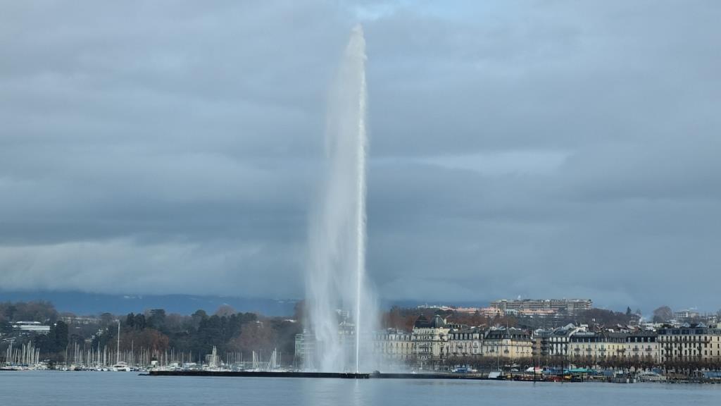 Nach der kleinen Stärkung begeben wir uns auf Stadterkundung. Wir waren vor vielen Jahren einmal im Sommer in Genf beim Fêtes de Genève, hatten aber keine Zeit die Stadt zu besichtigen und einmal waren wir am Autosalon, da war auch keine Zeit für Stadterkundung. Deshalb freuen wir uns und sind gespannt was denn Genf so alles zu bieten hat. Unser erstes Ziel ist der See und der Blick auf den Jet d’Eau. Die Wasserfontäne ist das eigentliche Wahrzeichen von Genf. Leider ist das Wetter nicht so toll, es ist wolkenverhangen und es beginnt leicht zu regnen.