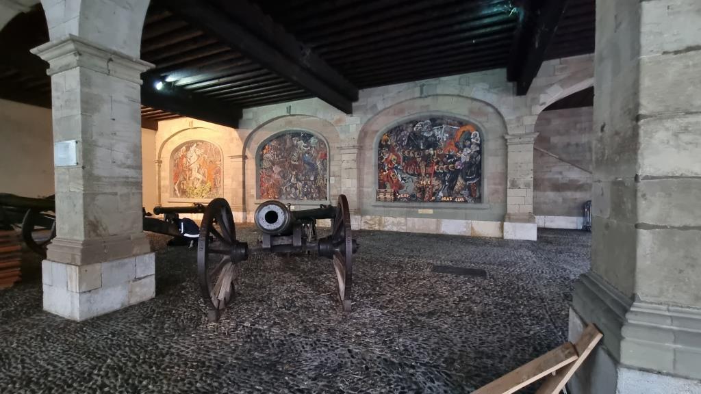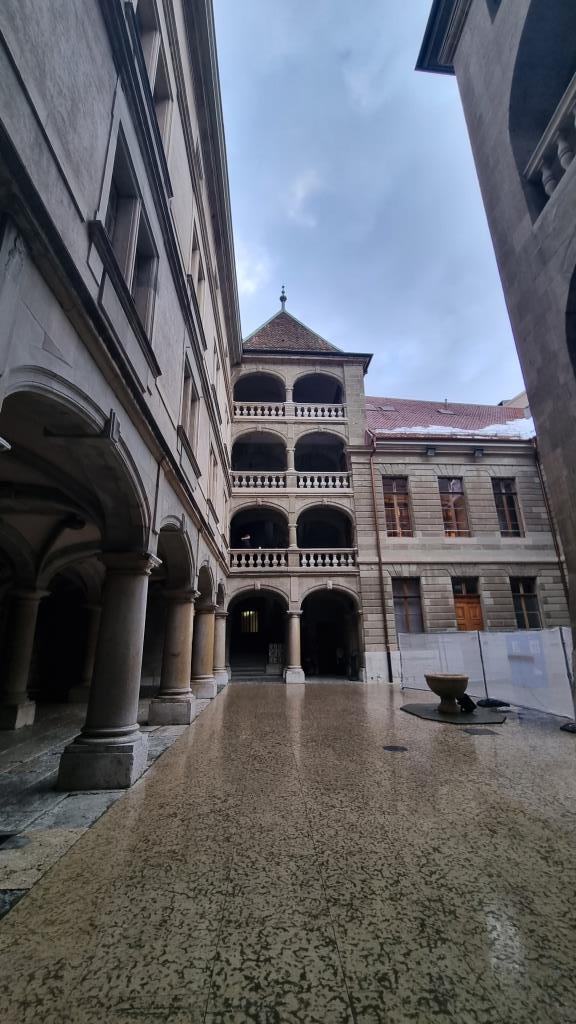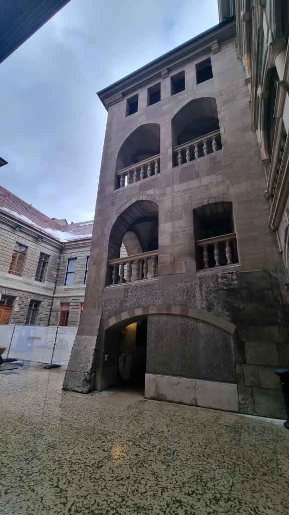 Wir spazieren weiter dem See entlang zur Mündung der Rhone und laufen über einen Fussgängersteg und kommen so in die Altstadt von Genf. Die Altstadt ist sehr gepflegt und verfügt über viele kleine Läden, Plätze mit vielen Restaurants, die grosse Kathedrale und das Rathaus sowie das Artilleriemuseum in dem alte Kanonen und Mosaike zu sehen sind. Gleich daneben ist das Rathaus von Genf (Hôtel de Ville) mit einem sehr schönen Innenhof. Ausserdem sehen wir uns gleich gegenüber die Maison Tavel an, ein kostenloses Museum welches die Stadtgeschichte veranschaulicht und im obersten Stockwerk ein Bronzemodell der Stadt Genf um das Jahr 1850 beherbergt. Die Maison Tavel soll das älteste noch existierende Wohnhaus von Genf sein aus dem 14. Jahrhundert.