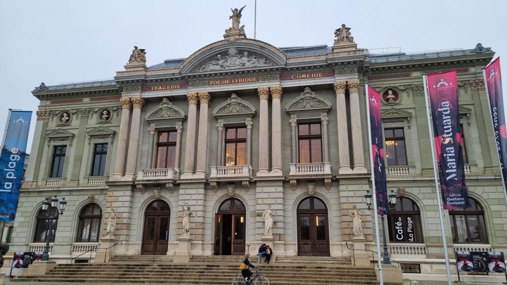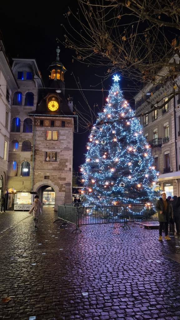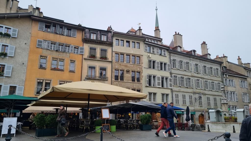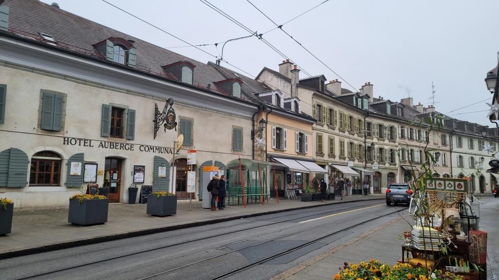 Wir fahren mit der Strassenbahn zurück ins Zentrum und kommen bei der Oper und dem Musikkonservatorium vorbei, ausserdem beim Reformationsdenkmal. Wir statten dem Plainpalais einen Besuch ab, hier gastiert gerade der Weihnachtszirkus. Ausserdem laufen wir über die Hans Wilsdorf Brücke, welche über die Arve führt zur grossen Rolex Fabrik und von dort aus fahren wir mit der Strassenbahn nach Carouge, einem herzigen Aussenquartier von Genf. Hier genehmigen wir uns in einem Café eine Pause bei Kaffee und Kuchen.