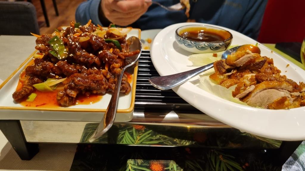 Als wir die Kirche verlassen ist es schon fast dunkel. Wir laufen zurück zum See und kommen noch beim Jardin Anglais vorbei und sehen die bekannte Blumenuhr. Ausserdem ist im Park ein Weihnachtsmarkt durch den wir kurz durchschlendern. Langsam wird Zeit etwas Essen zu gehen. Für diesen Abend entschliessen wir uns nahe dem Hotel in ein chinesisches Restaurant zu gehen.
