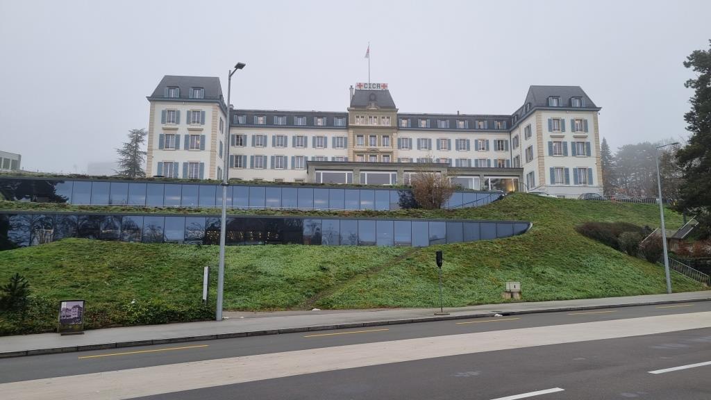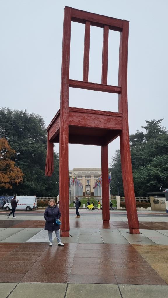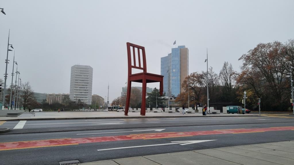 Für heute haben wir ein Tagesticket mit dem öffentlichen Verkehr (Geneva Transport Card) bestellt, welche man kostenlos bekommt, wenn man in Genf in einem Hotel übernachtet. Also fahren wir nach dem Frühstück direkt zum Place de Nations. Wir schauen uns die Skulptur Broken Chair an, die an Opfer von Landminen erinnern soll. In das UNO Gebäude kommt man nur mit einer Führung. Wir wollen allerdings nicht anstehen und haben zu wenig Zeit um das so vertieft zu besichtigen. Wir spazieren durch den angrenzenden Park zum Ariana Museum, kommen vorbei am Hauptgebäude des internationalen Roten Kreuzes und machen ein paar Fotos vom UNO Gebäude von aussen.