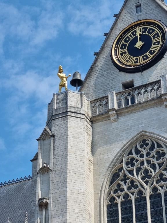 Es ist Mittag und wir sehen noch an der Kirche den goldenen Mann die Glocke schlagen. Danach laufen wir wieder zurück zum grossen Monseigneur Ladeuzeplein, ein grosser Platz vor der Universitätsbibliothek. Wir holen unser Auto aus der Tiefgarage und fahren Richtung Brüssel. Aber vorher wollen wir noch nach Waterloo.