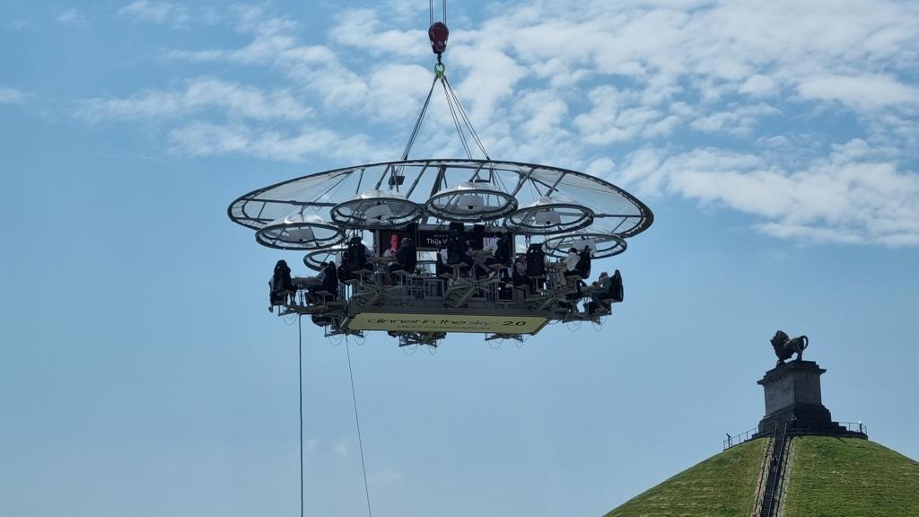 Waterloo liegt südlich von Brüssel. Von Löwen aus über die Autobahn brauchen wir etwa 45 Minuten. Wir parkieren unser Auto auf dem Parkplatz und gehen ins Restaurant auf dem Gelände eine Kleinigkeit essen, bevor wir uns mit der Geschichte Napoleons auseinandersetzen. Vor dem Restaurant ist ein Kran aufgebaut, man könnte ein Dinner in the sky reservieren. Na ja – wem’s gefällt. Wir beschränken uns auf einen Tisch im schönen Garten des Restaurants.