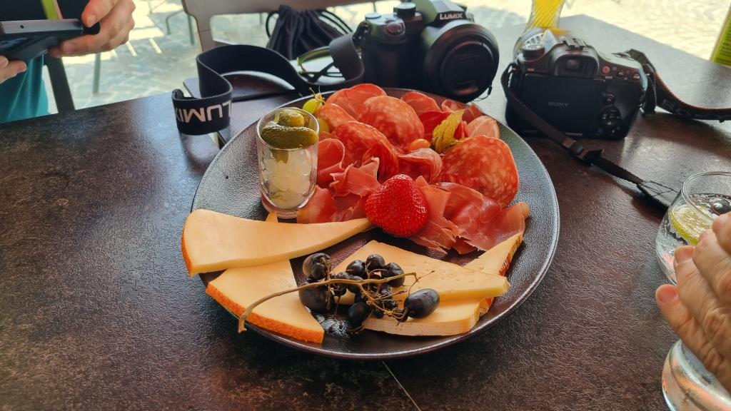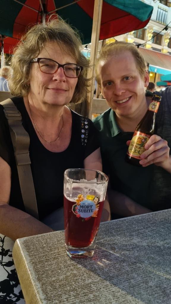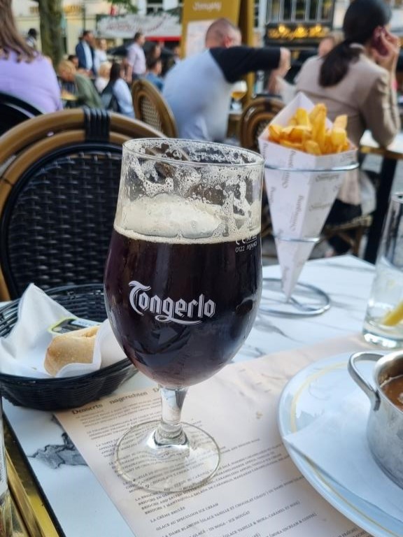 Langsam wird es Zeit für Abendessen. Bei der Brasserie Ommegang ergattern wir gerade noch einen freien Tisch draussen und essen dort Belgische Spezialitäten. Das Vol-au-Vent tönt luftig, die Sauce war dann aber ganz schön deftig und dazu natürlich Pommes-frites. Da waren die Lachsnudeln von Andi besser. Der Sohn hatte eine Vlamse Carbonnade, (Gulasch in Biersauce) die ist ganz gut gewesen.