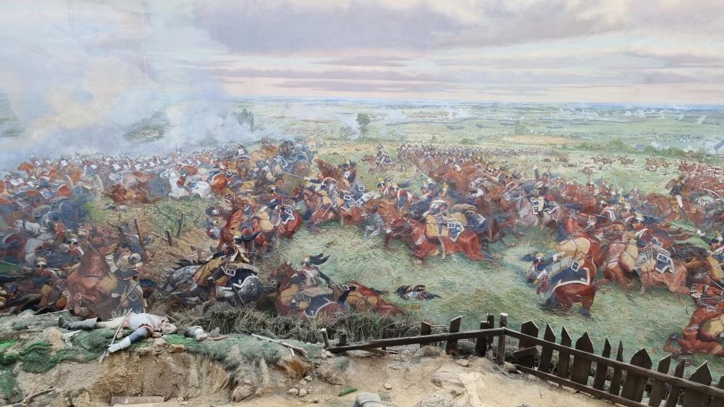 Danach geht es zuerst ins Museum, wo es eine grosse Ausstellung zu den verschiedenen Truppen gibt, die an der Schlacht beteiligt waren. Dann läuft man in das runde Panoramagebäude und sieht auf den Wänden rundherum die ganzen Kompanien und die Schlacht abgebildet und man wird mit Kanonendonner und Schreien der Soldaten eingedeckt. Danach läuft man die 226 Treppen auf den Löwenhügel hinauf und geniesst von dort oben die Aussicht auf das Schlachtfeld.