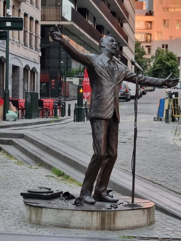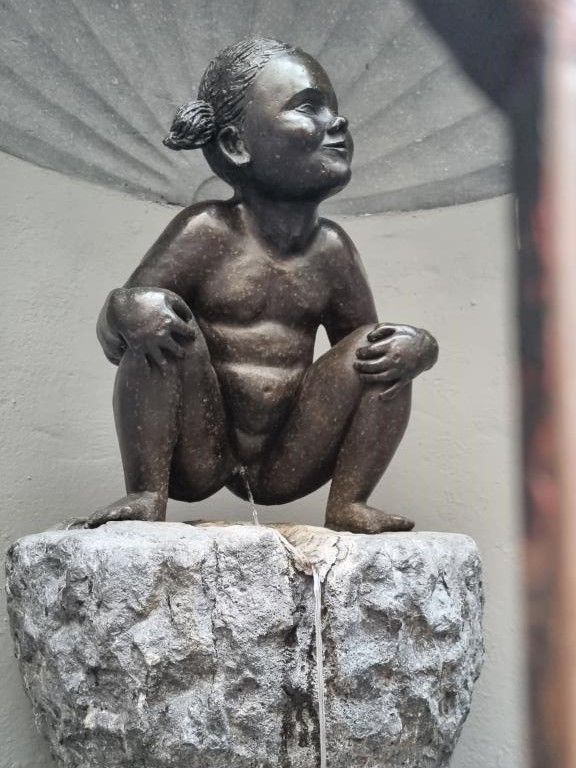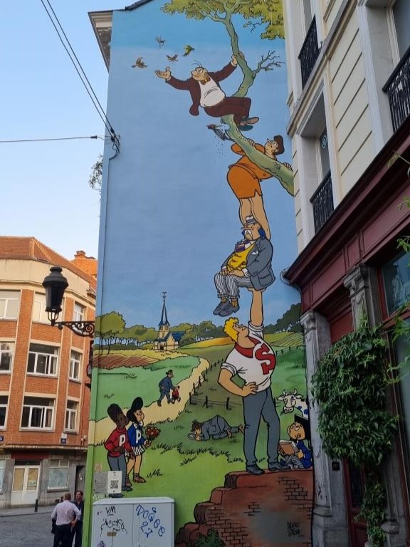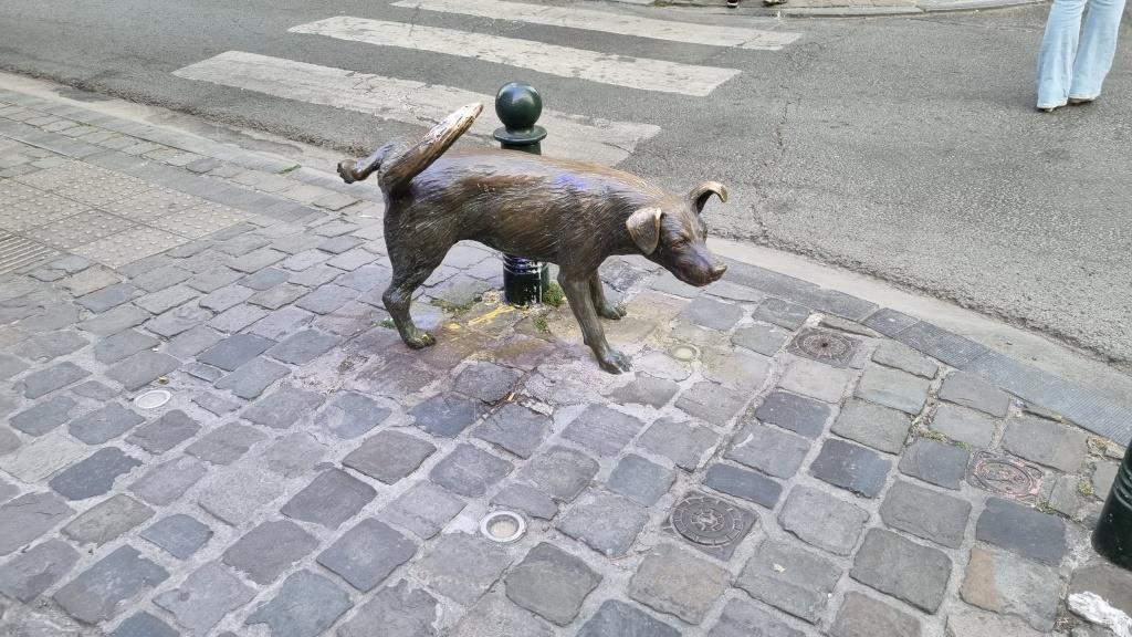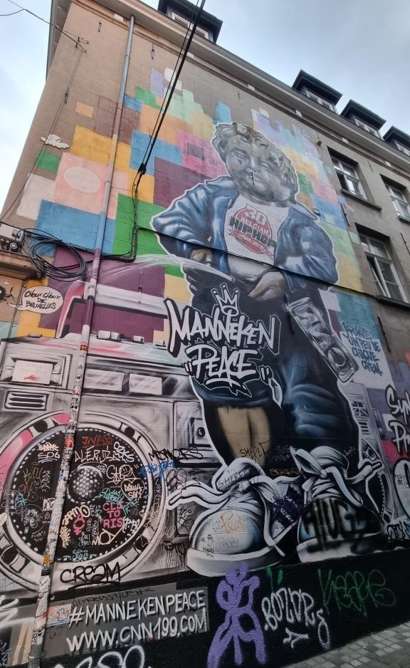 Nach dem Essen machen wir uns auf die Suche des kleinen bekannten Jungen in Brüssel, den Manneke Pis. Wir sehen viele Murals, eine Statue des Chansonniers Jacques Brel und dann endlich den Brunnen mit dem Männchen. Er ist wirklich viel kleiner als gedacht, aber immer ein beliebtes Fotoobjekt.