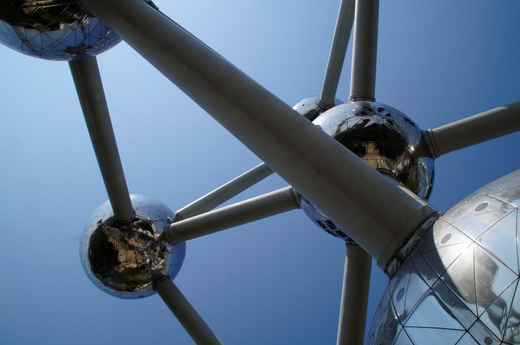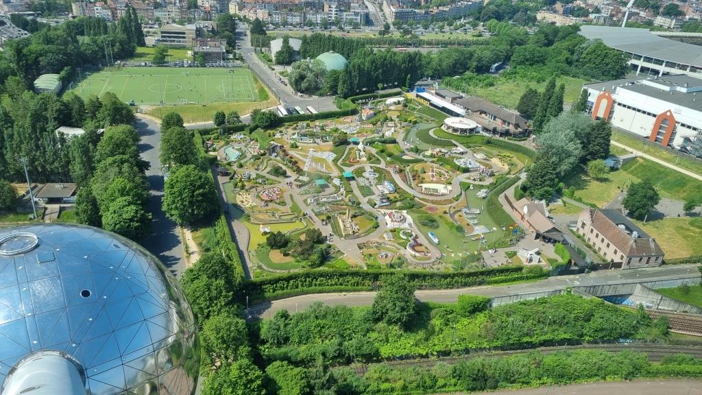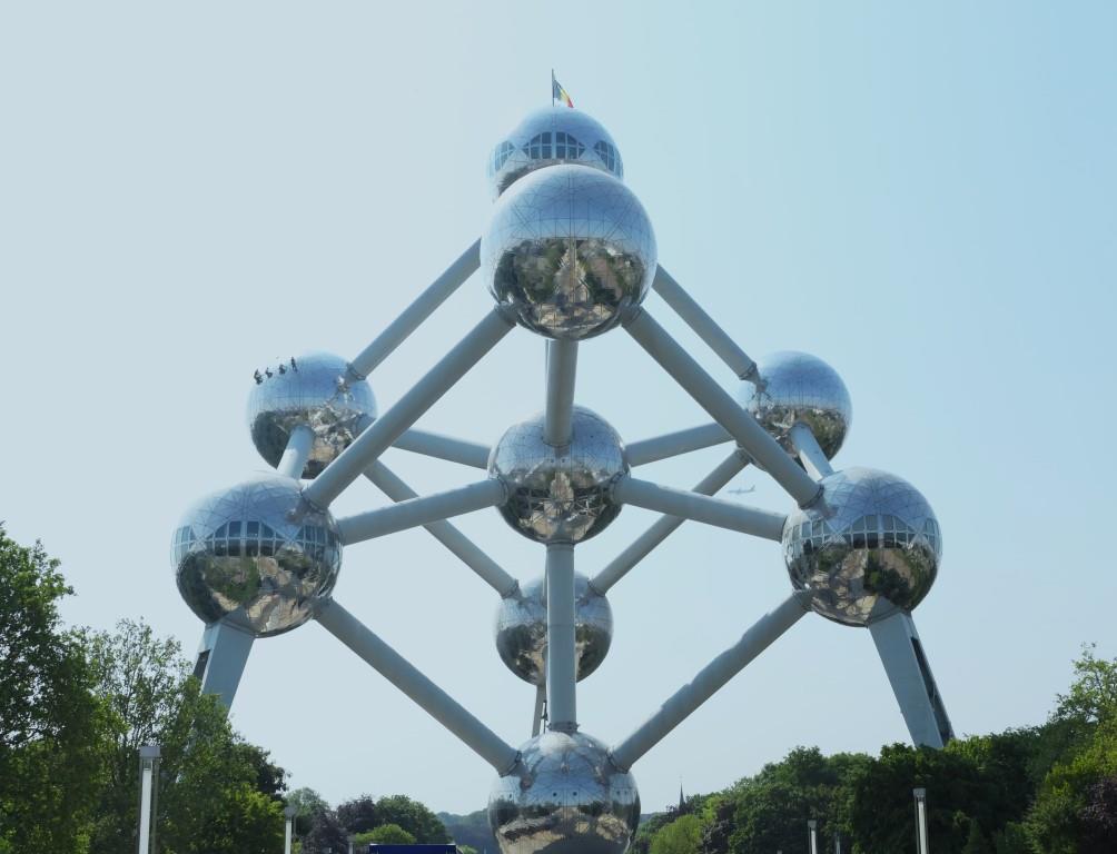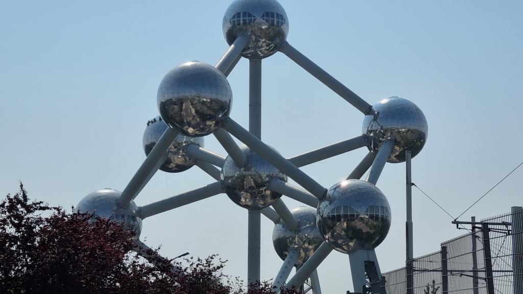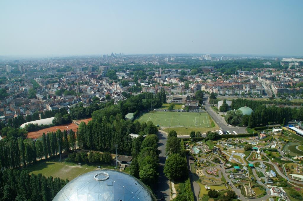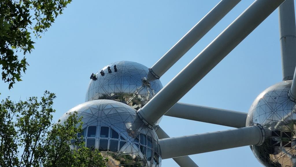 Dann sind wir müde und laufen zurück zum Hotel und fallen in die Betten. Am nächsten Morgen nach dem leckeren Frühstück fahren wir mit der U-Bahn hinaus zum Expo-Gelände. Die grossen Kugeln sind schon von Weitem sichtbar. Das Atomium wurde zur Weltausstellung 1958 erbaut und soll ein stark vergrössertes Eisenmolekül darstellen. Wir wollen uns dieses näher ansehen. Mit einem Lift saust man in die oberste Kugel, in der sich ein Restaurant befindet. Von dort aus geht es über Rolltreppen oder Treppen von einer Kugel zur anderen. Im Innern hat es Austellungen, eine Lichtshow und sogar Kugeln, die man für einen Event mieten kann. Die Aussicht von oben ist toll, wobei man hauptsächlich das Expogelände und das angrenzende Mini-Europe und Heysel-Stadion sieht.