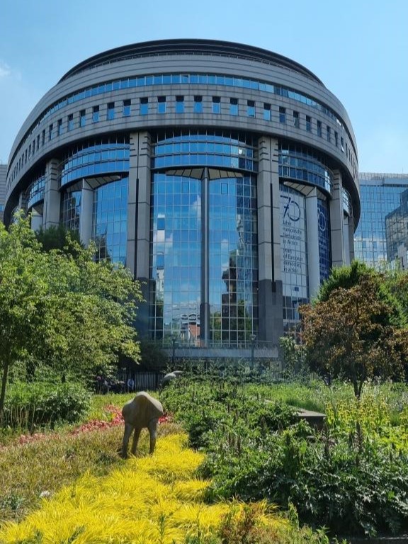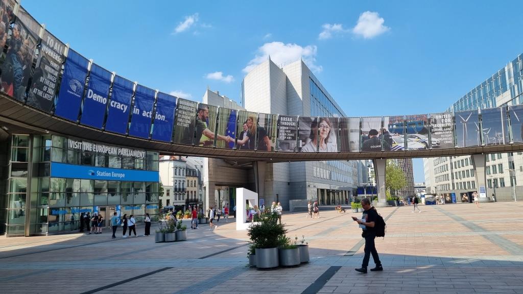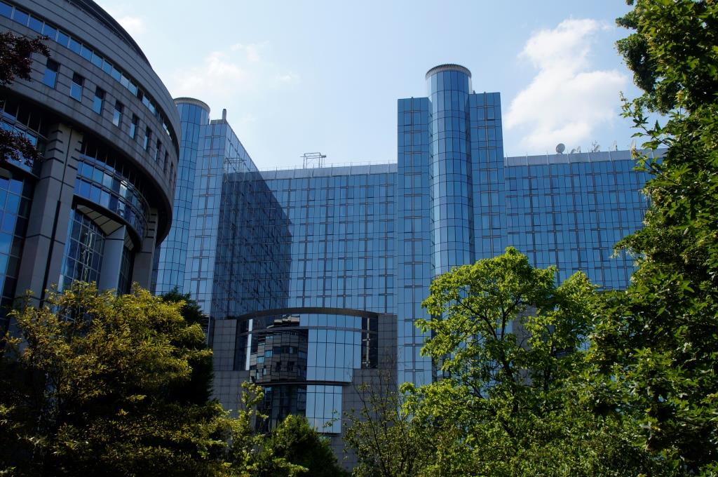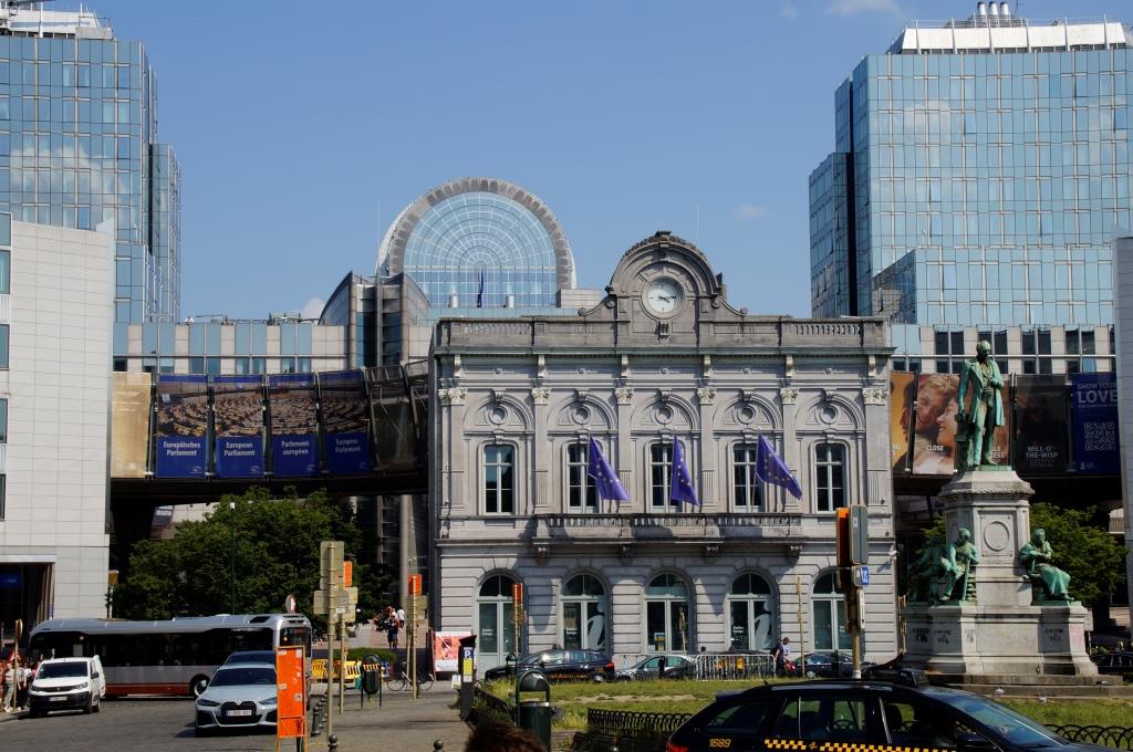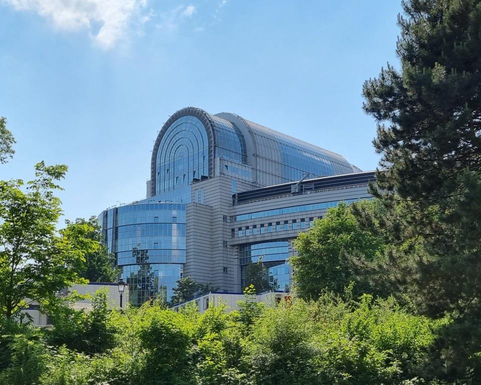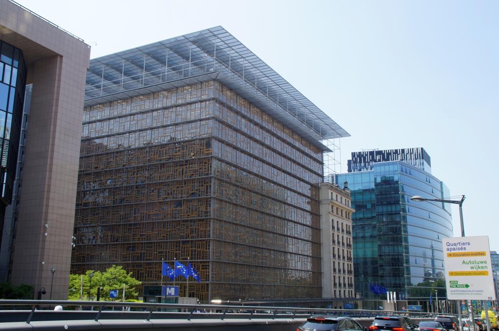 Jetzt wird es Zeit das Europaviertel zu besichtigen. Also fahren wir mit Tram und U-Bahn nach Schuman und stehen dann direkt vor dem Berlaymont Gebäude, das man oft im TV sieht. Gleich daneben das Europagebäude, dessen Hülle aus restaurierten Fensterrahmen besteht.