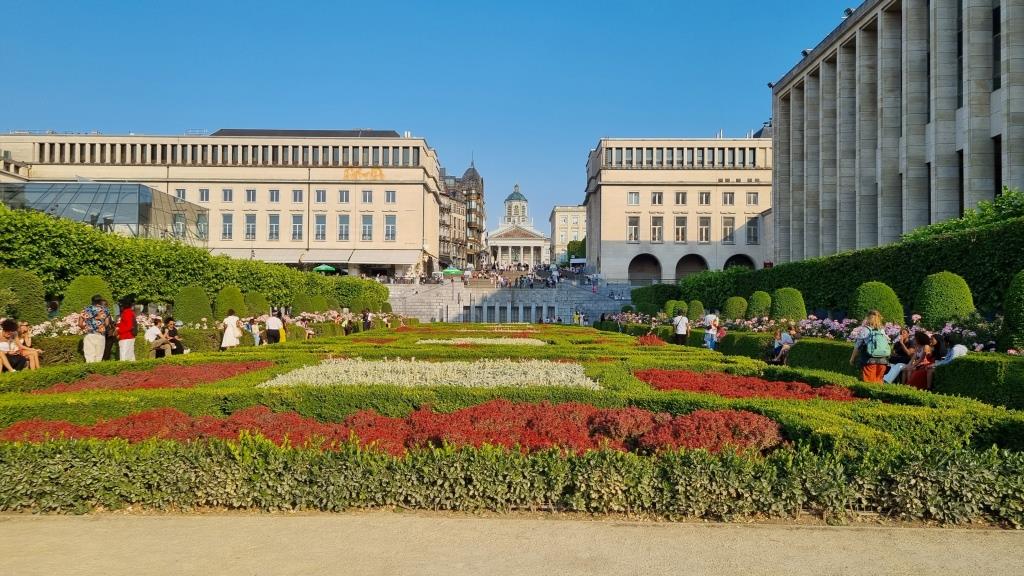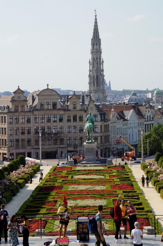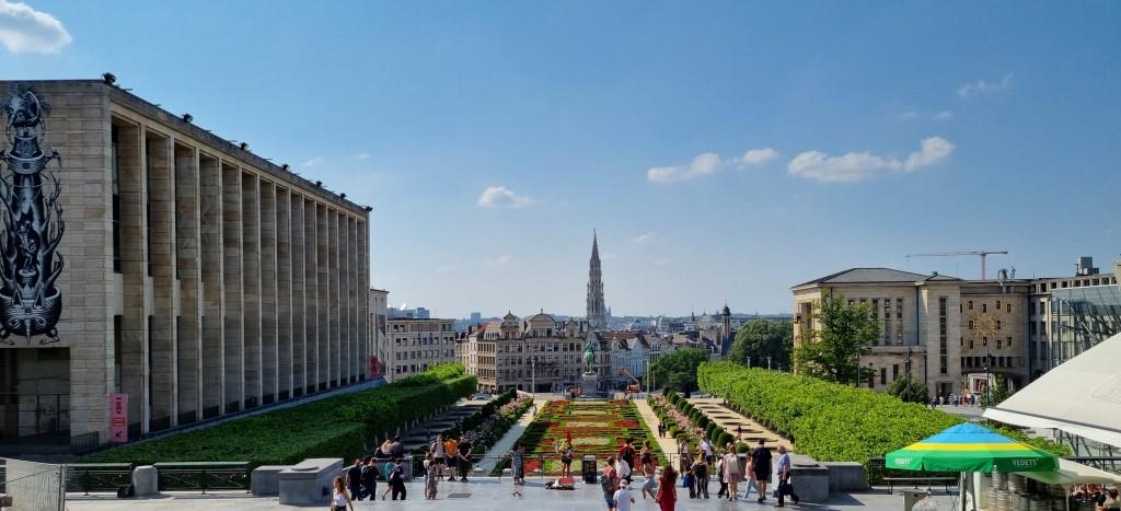 Danach marschieren wir zum Europaparlament und dem Parlamentarium und auf dem Weg zurück zum Hotel kommen wir noch beim Schloss vorbei, das leider eingerüstet ist und renoviert wird. Ein Stück weiter vorne ist der Mont des Arts mit einer schönen Aussicht auf Brüssel.