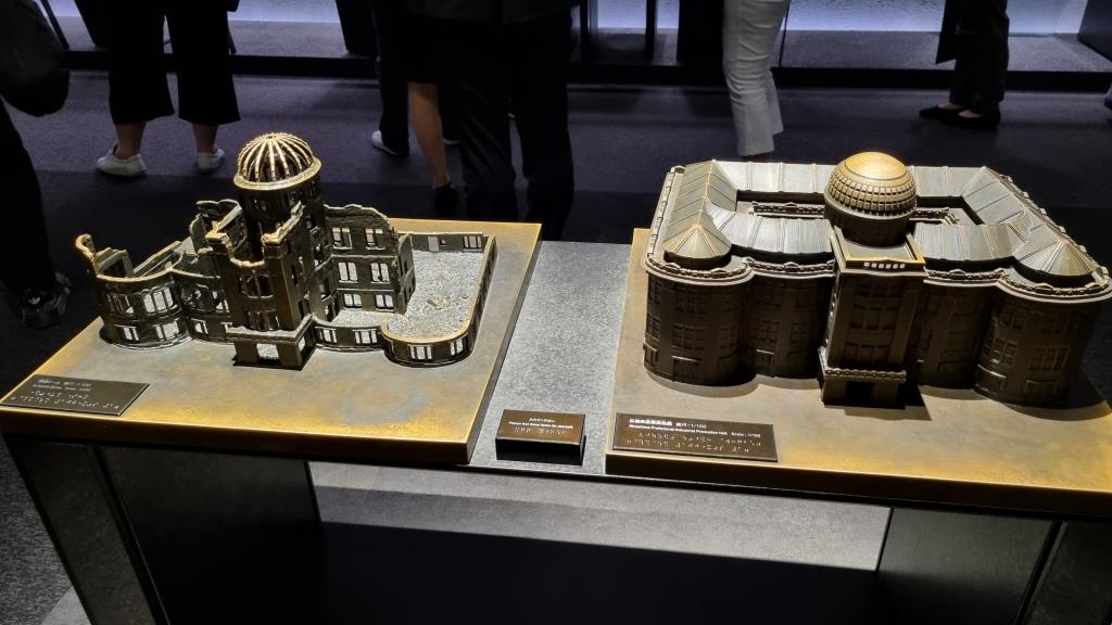 Wir kamen in Hiroshima an und fuhren mit dem Bus zum Hotel. Diesmal ein minim besseres Hotel mit einer schönen Aussicht vom Frühstücksraum. Unsere Koffer waren schon da und wir machten uns im Zimmer kurz frisch. Dann ging es schon wieder weiter, eine kurze Strecke zu Fuss zum Friedensmuseum. Wir mussten für den Eintritt etwas anstehen, es hatte viele Leute und Schulklassen, die ins Museum wollten.