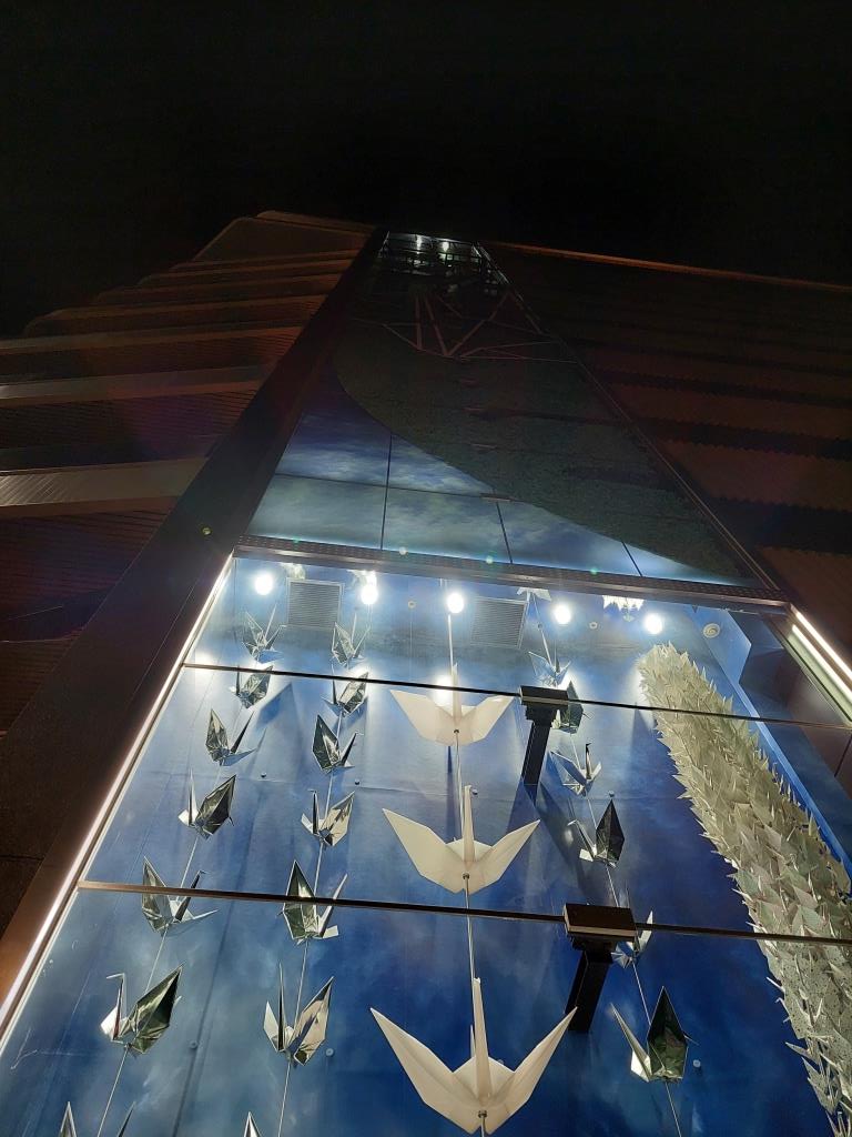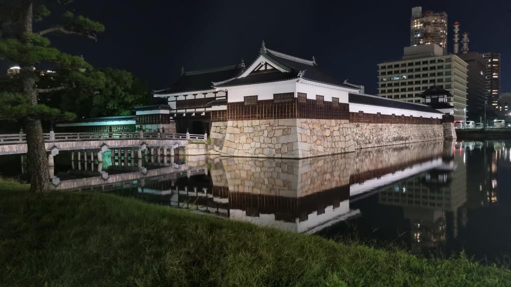 Nach diesem leckeren Essen streiften wir noch etwas durch das nächtliche Hiroshima. Wir kamen am schön beleuchteten Hiroshima Castle vorbei und am Orizuru Tower. Leider war die Aussichtsplattform schon geschlossen. Für alles hat man einfach keine Zeit.