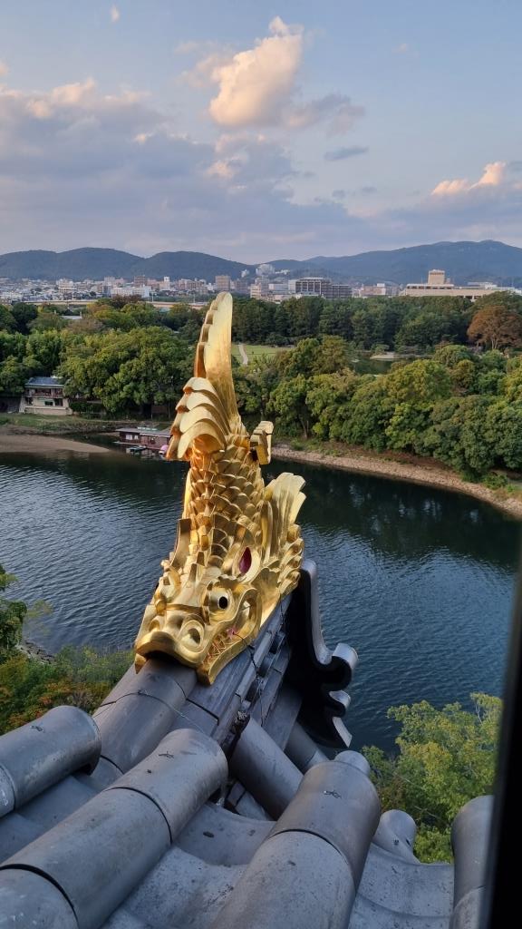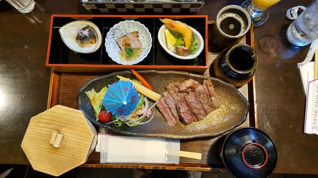Kurashiki ist eine historische Handelsstadt aus der Edo-Zeit (1603-1868). Bis heute sind die vielen Lagerhäuser am schönen Kanal erhalten. Der Name Kurashiki heißt deswegen auch übersetzt „Stadt der Lagerhäuser“. Bevor wir durch das Städtchen spazierten gingen wir Mittagessen. In einem schönen Restaurant wurde uns ein sehr guter Lunch serviert.