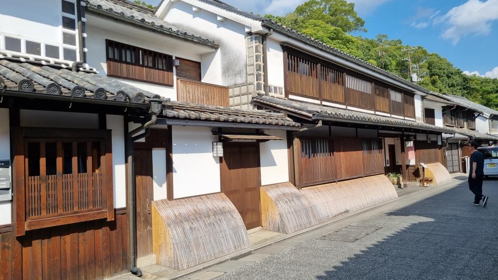 Am Morgen nach dem Frühstück mussten wir mit dem ganzen Gepäck zum Bahnhof Hiroshima. Vorgesehen war ein Taxi zu nehmen. Es wurde aber nicht berücksichtigt, dass morgens um 8 Uhr alle Taxis unterwegs sind und anscheinend konnte oder wollte man im Hotel keine Taxis bestellen. Wir wurden hinausgeschickt und sollten ein Taxi heranwinken. Toll – alle Taxis besetzt und wir winken wie die Doofen. Mit 12 Personen aussichtslos. Nach längerem Warten konnten dann ein paar Mitglieder unserer Reisegruppe mit Taxis zum Bahnhof, der Rest, darunter auch ich und mein Sohn mussten uns in einen vollen Bus quetschen mit den Riesenkoffern und zum Bahnhof fahren. Diesen Umstand fanden wir gar nicht gut gelöst und haben dies auch entsprechend gemeldet. Nun gut – auch wir kamen am Bahnhof an und von dort ging es dann 1 Stunde mit dem Shinkansen nach Okayama. In Okayama konnten wir das Gepäck im Hotel abgeben. Dieses Hotel schien eines der Besseren zu sein. Danach fuhren mit einem Vorstadtzug nach Kurashiki.