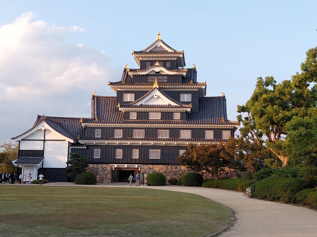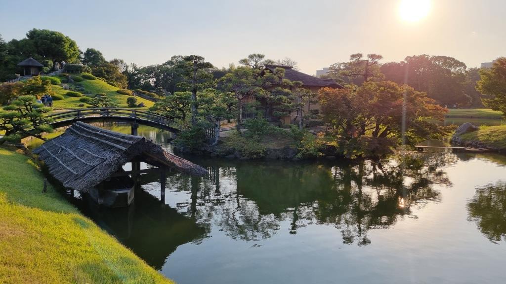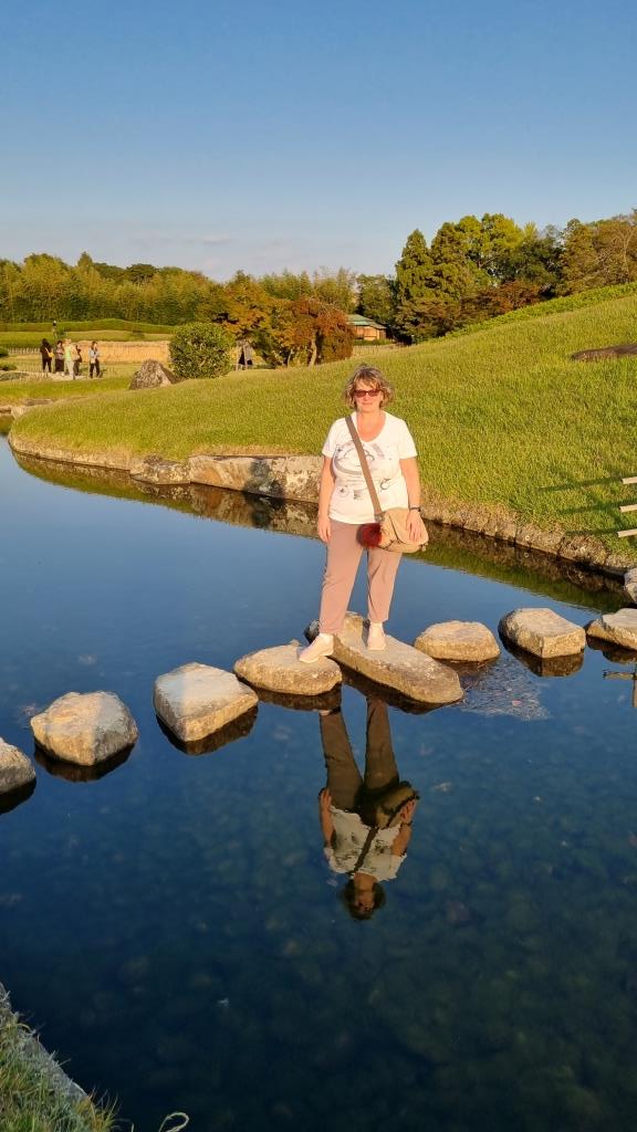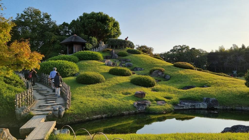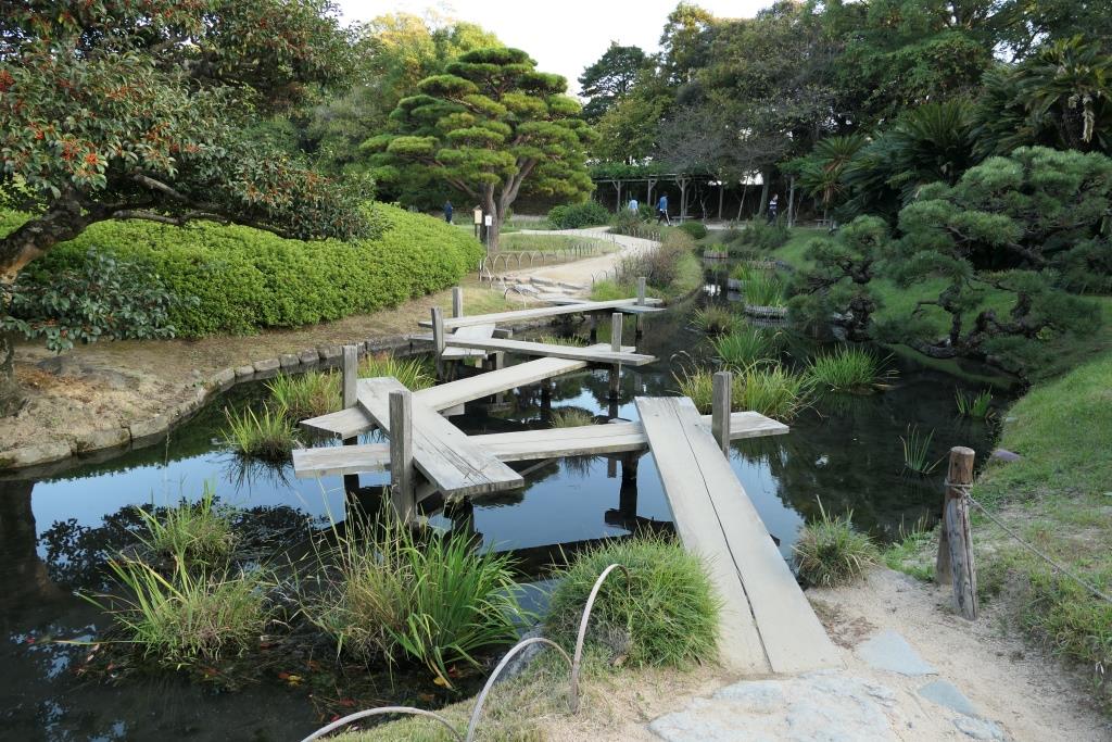 Im Anschluss fuhren wir mit dem Zug wieder zurück nach Okayama. Dort besuchten wir den Korakuen-Garten, einer der drei schönsten traditionellen Gärten Japans. Vom Bahnhof liefen wir etwa 20 Minuten zum Garten, der sich wirklich als sehr schön und weitläufig entpuppte. Das Wetter passte natürlich auch sehr gut.